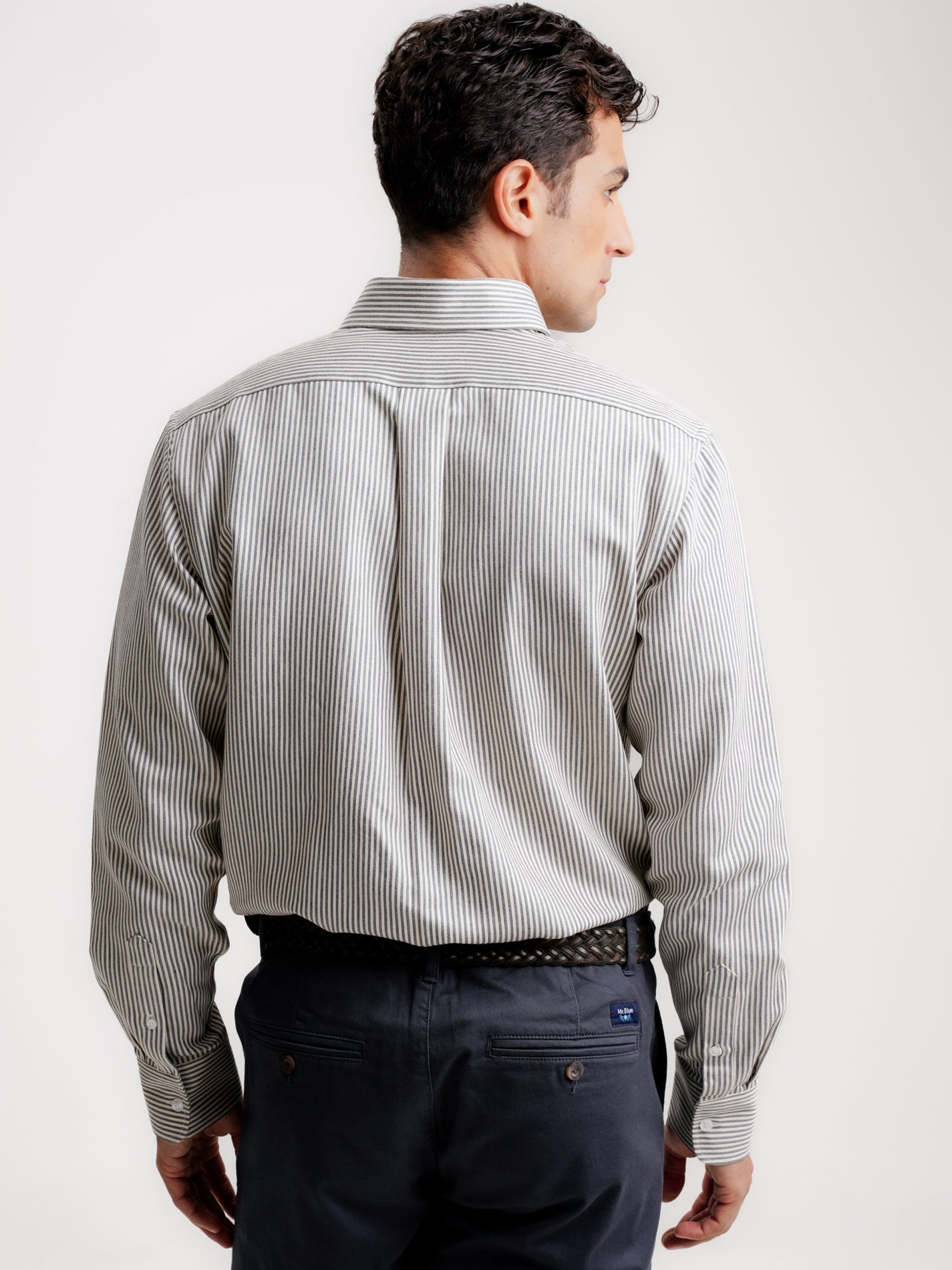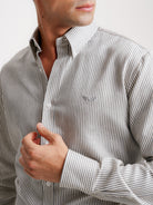 Camisa Regular Fit Twill Cinzenta Manga Comprida Com Logo Com Riscas