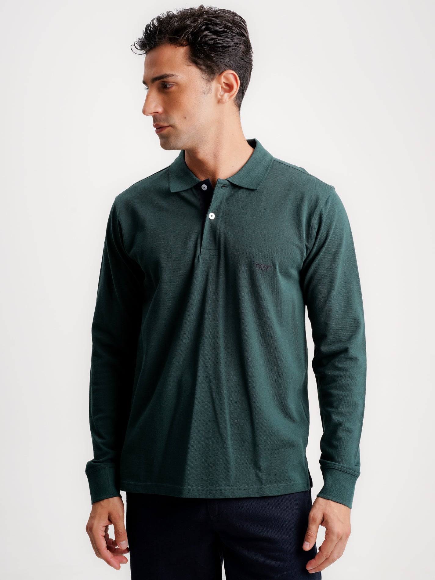 Polo Regular Fit Piquet Verde De Algodão Manga Comprida Liso e Com Logo
