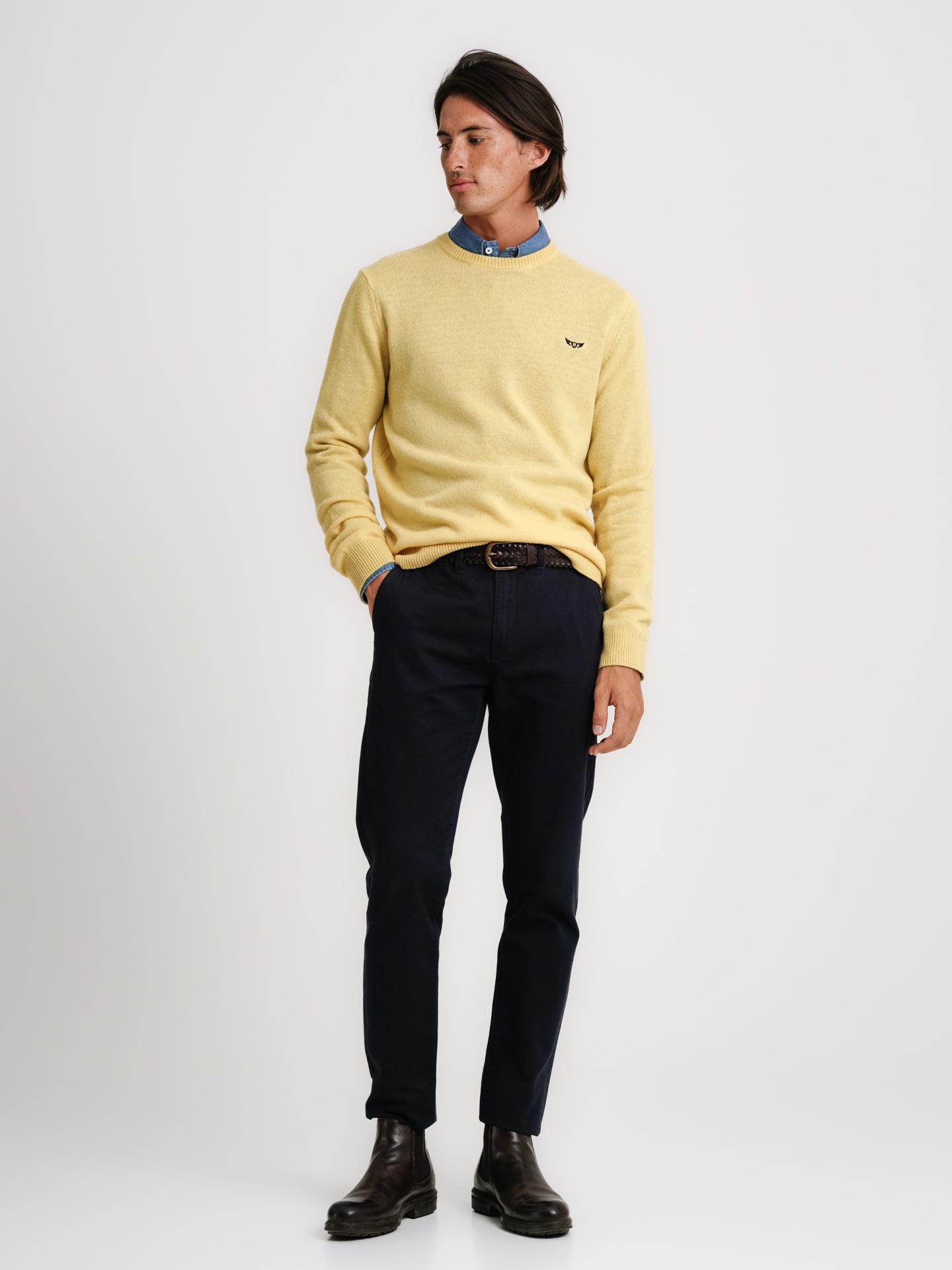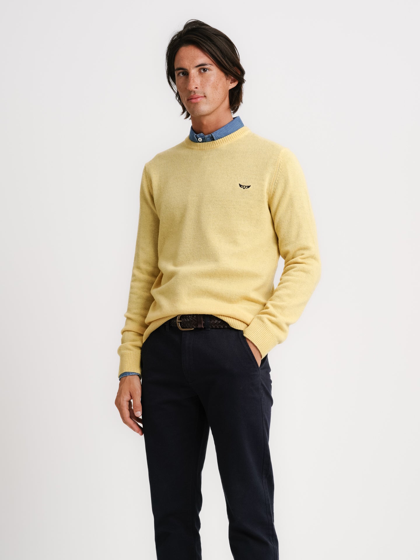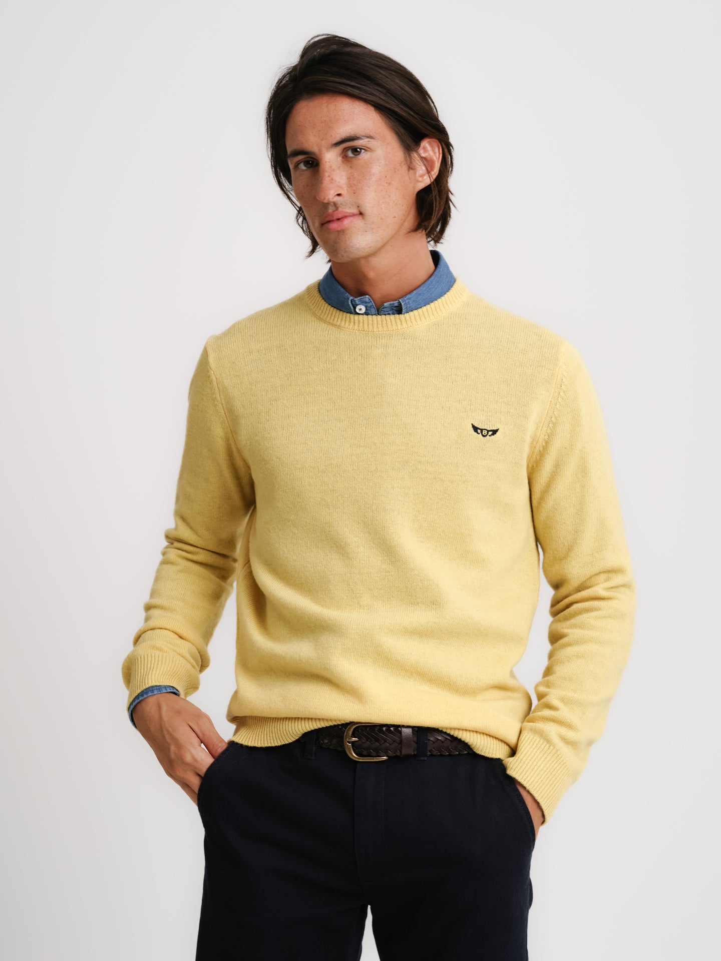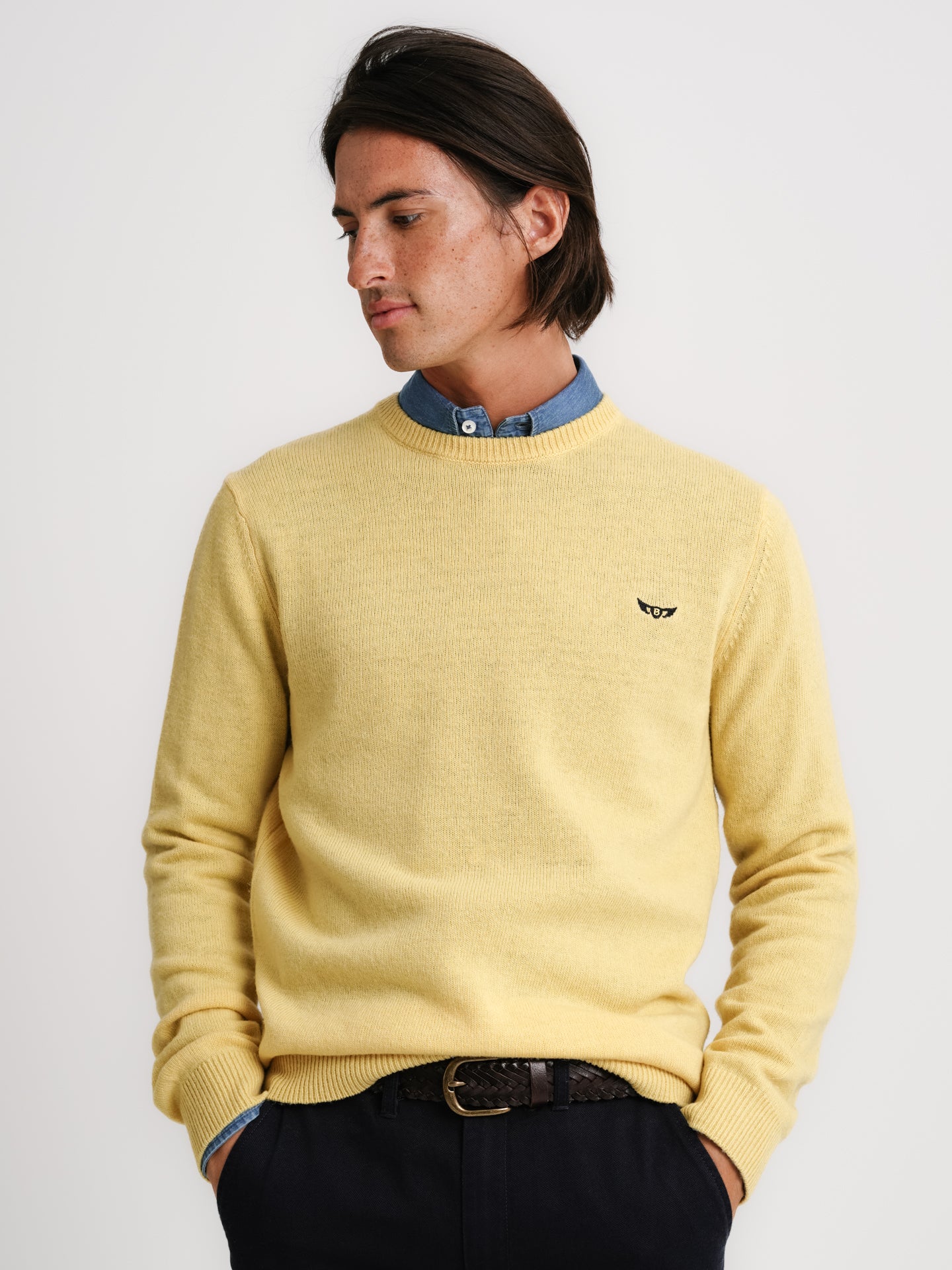 Pullover Lã Grosso Amarelo Lã Liso Com logo