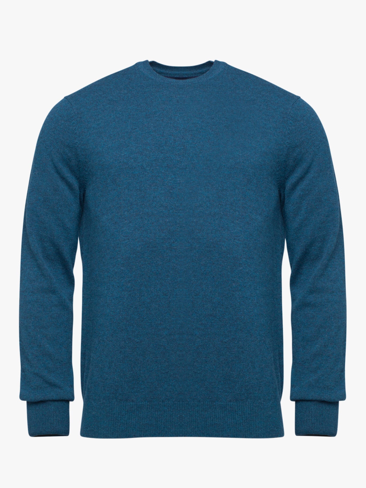 Camisola para homem azul intermédio. Confecionada em lã. Corte reto, gola redonda, manga comprida e acabamentos canelados