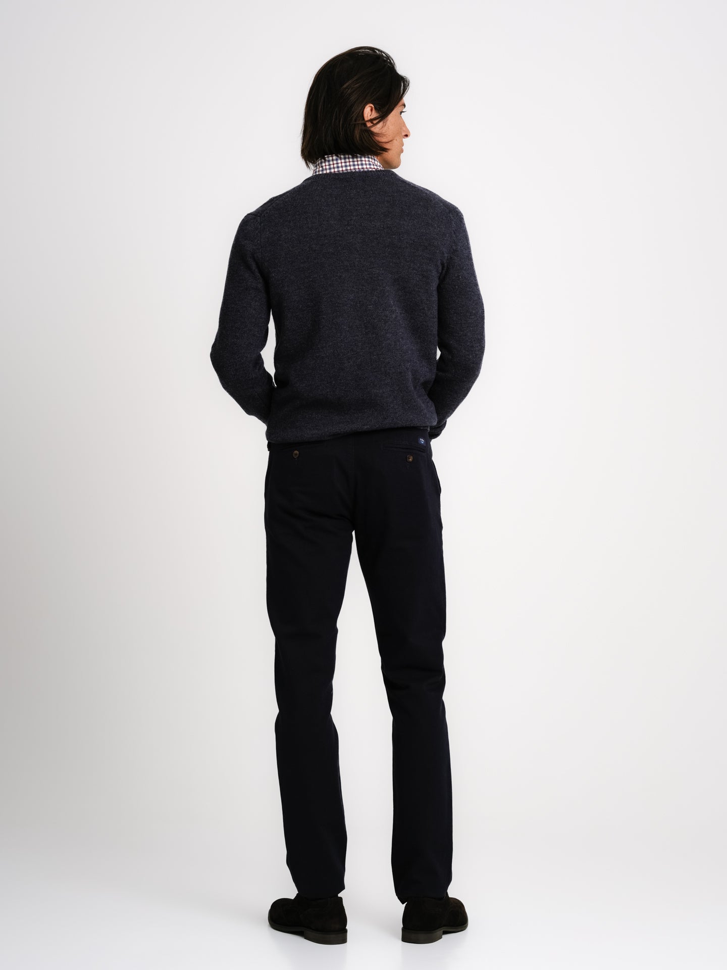Pullover Lã Grosso Azul Lã Liso Com logo