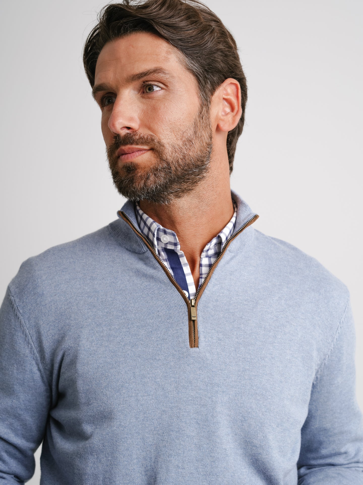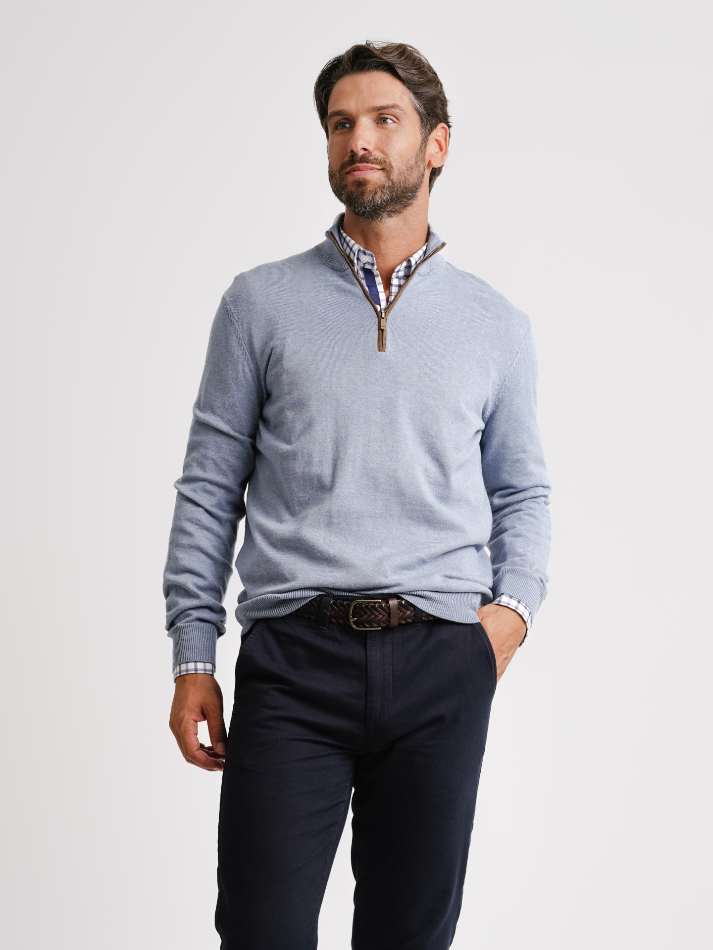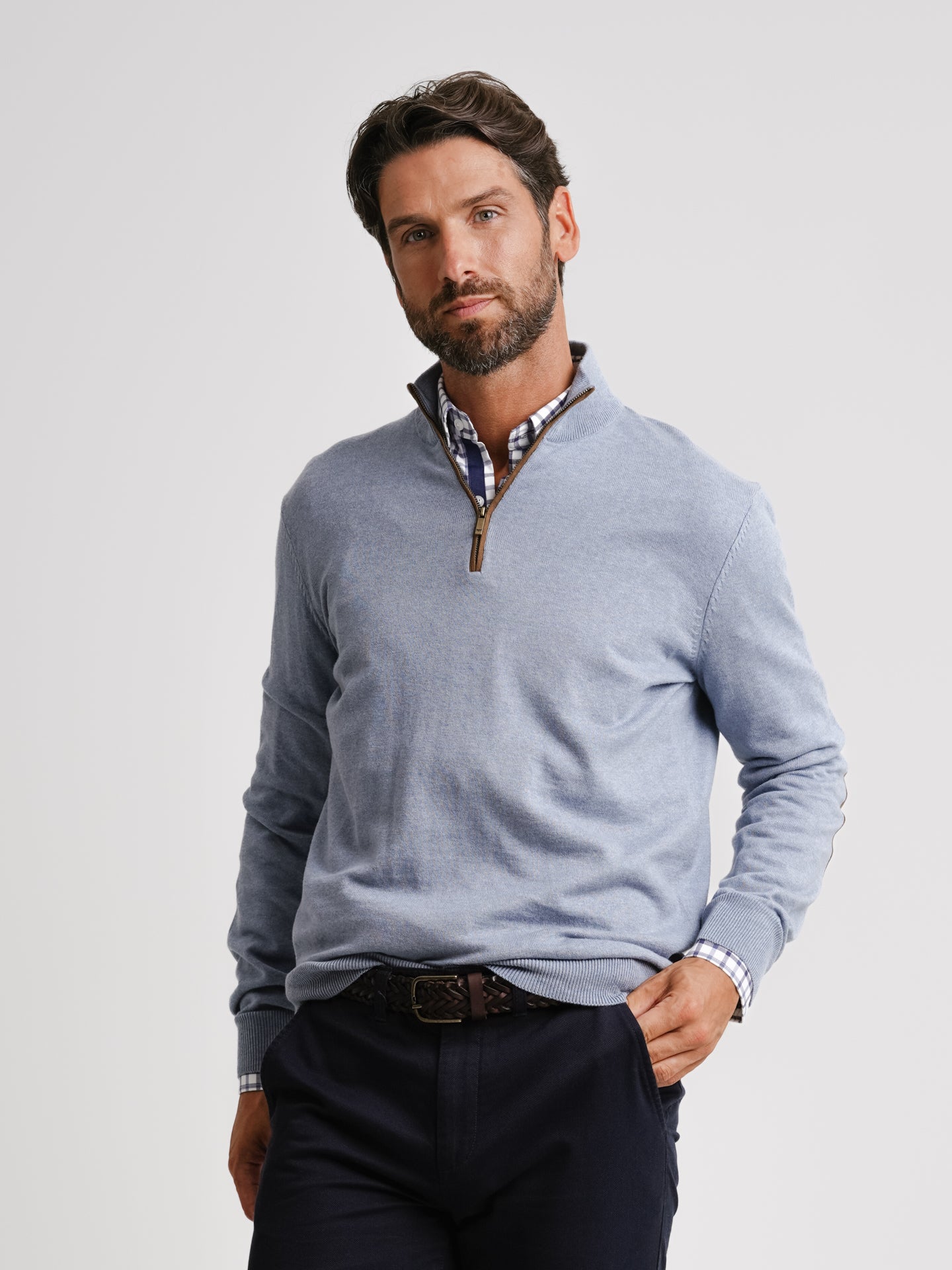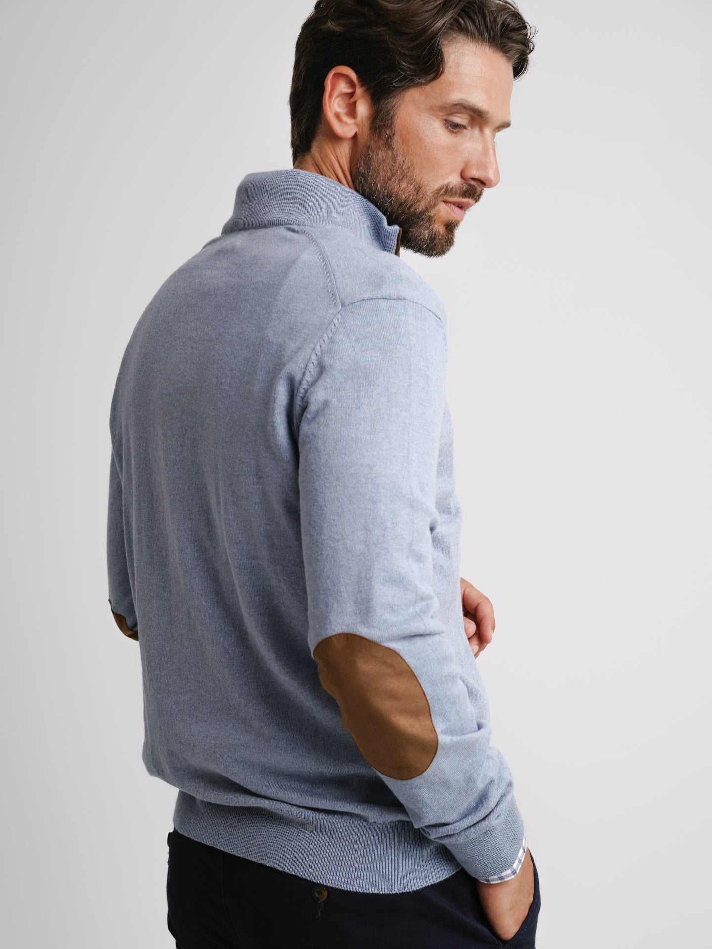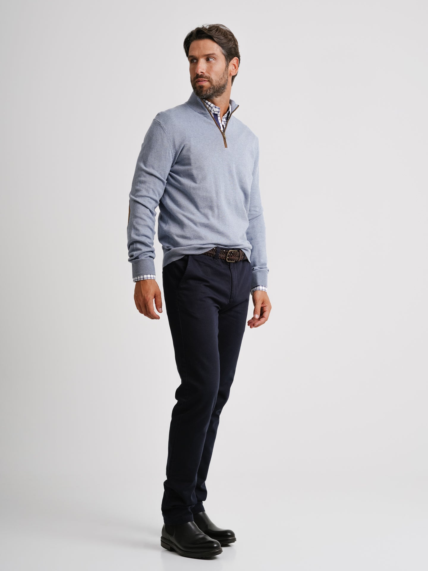Pullover Caxemira Fino Azul Caxemira Cotoveleira Liso