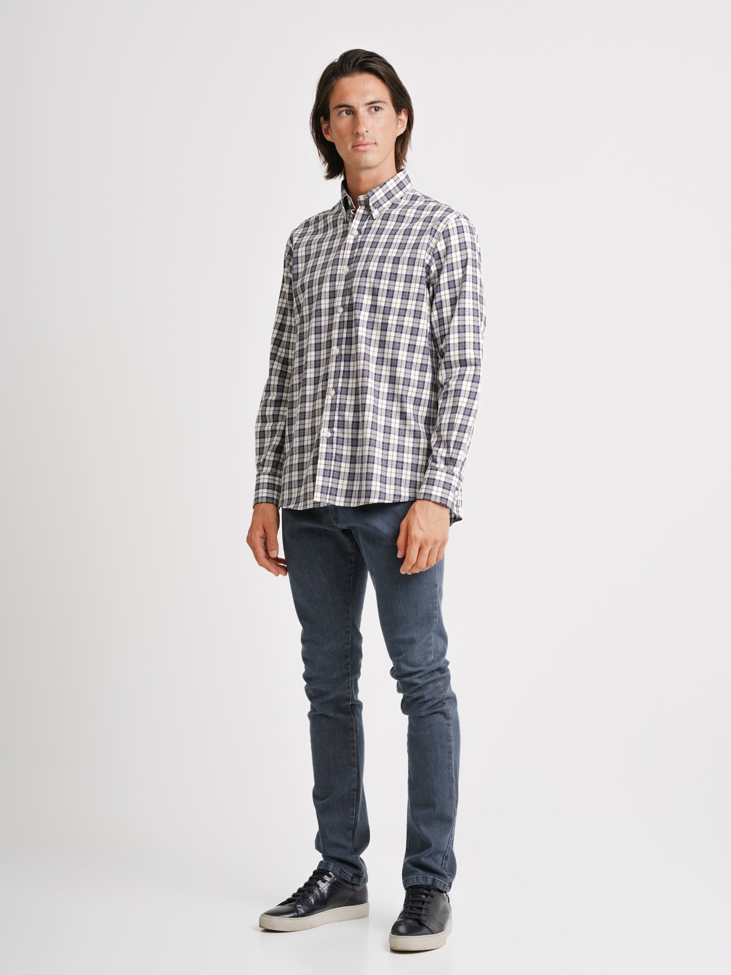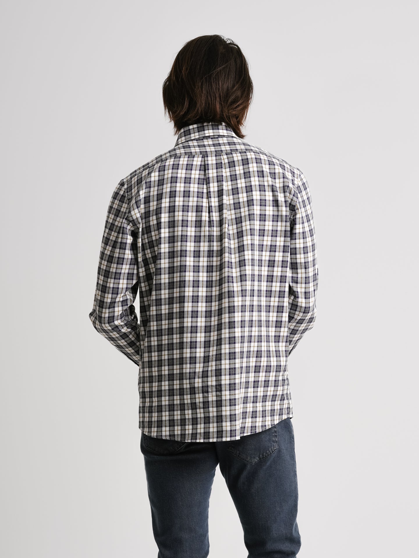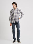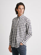 Camisa Regular Fit Twill Cinzenta Algodão Quadrados Com bolso