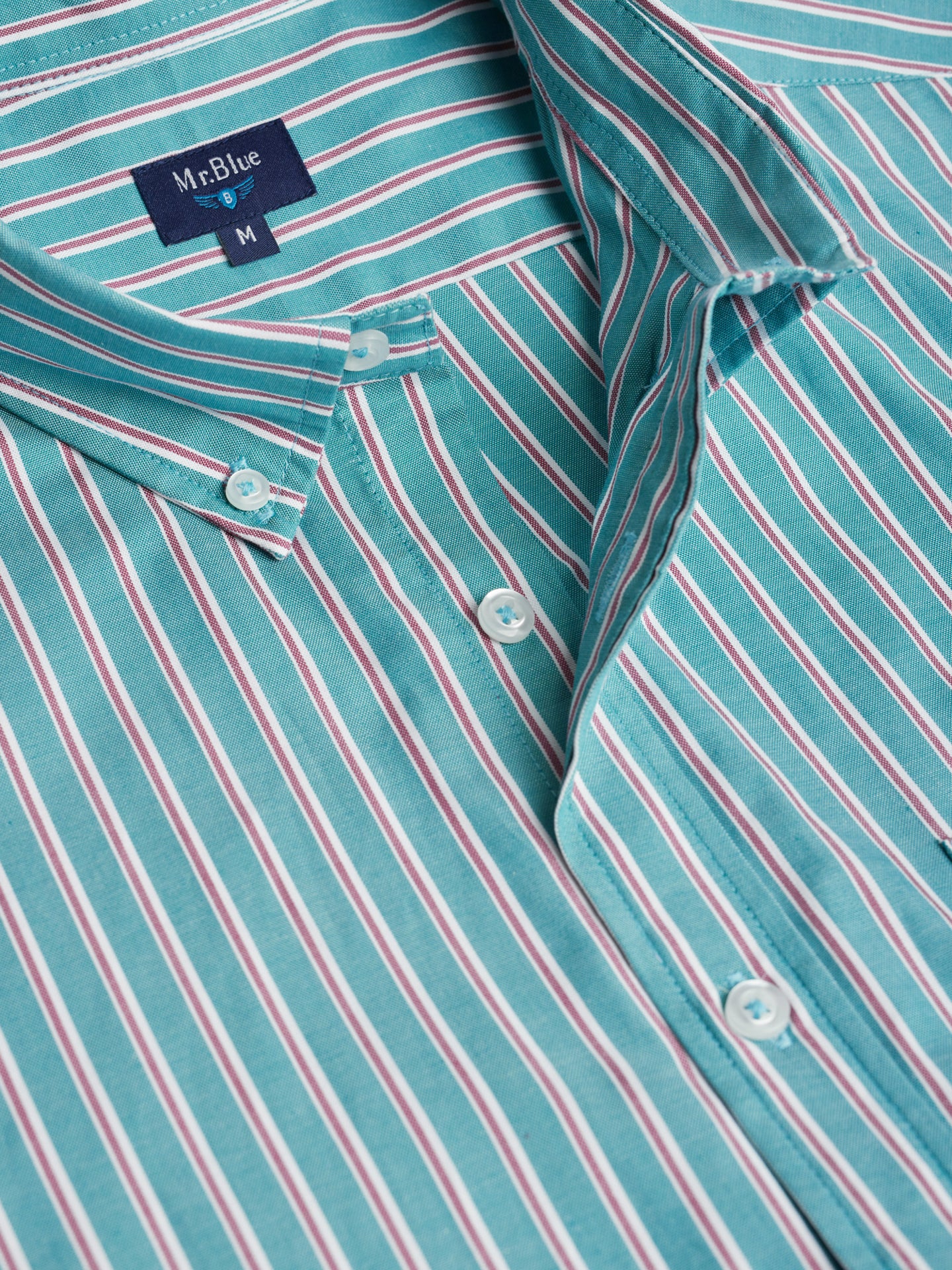 Camisa Regular Fit Oxford Verde Manga Comprida Com bolso às Riscas