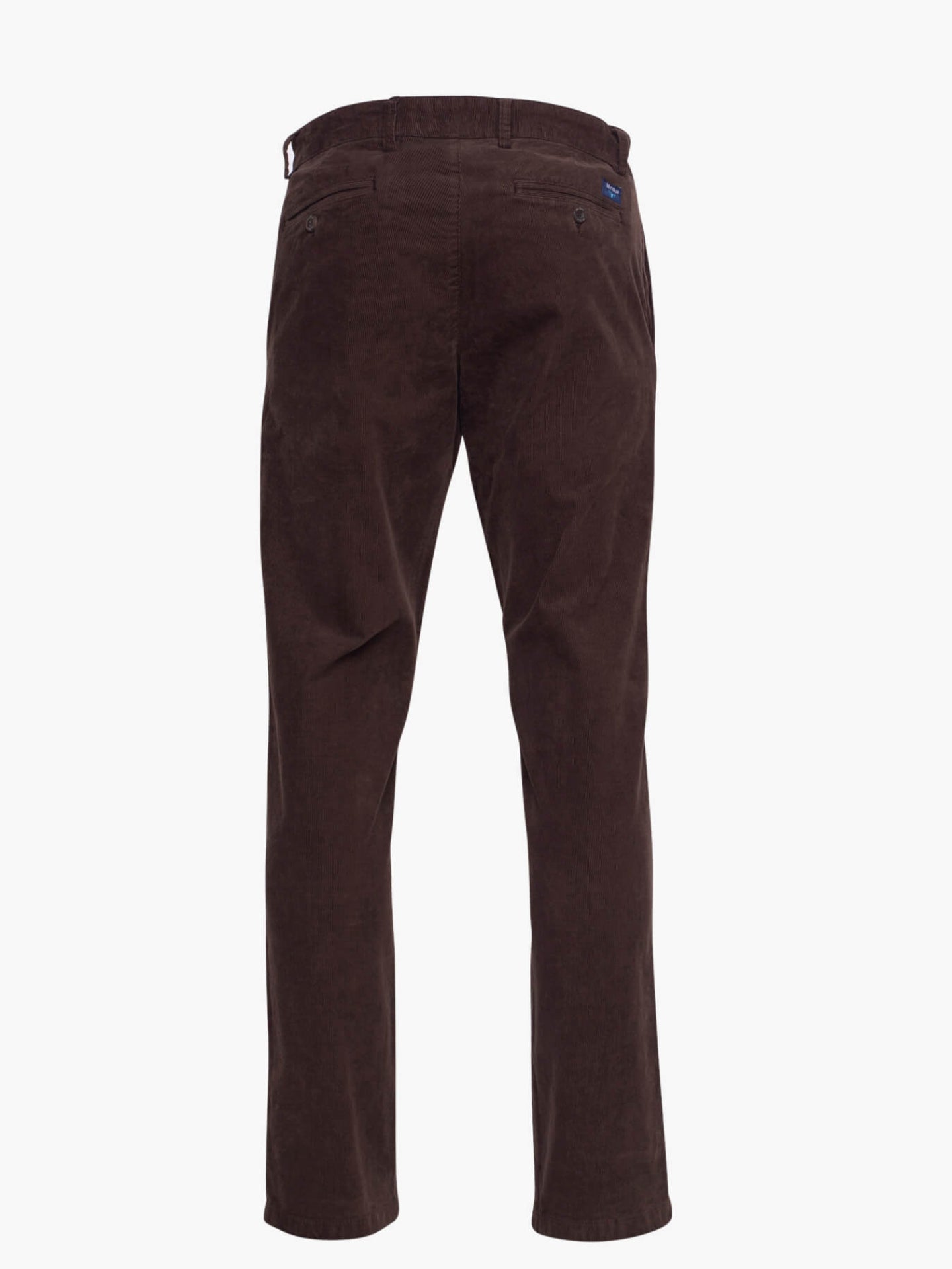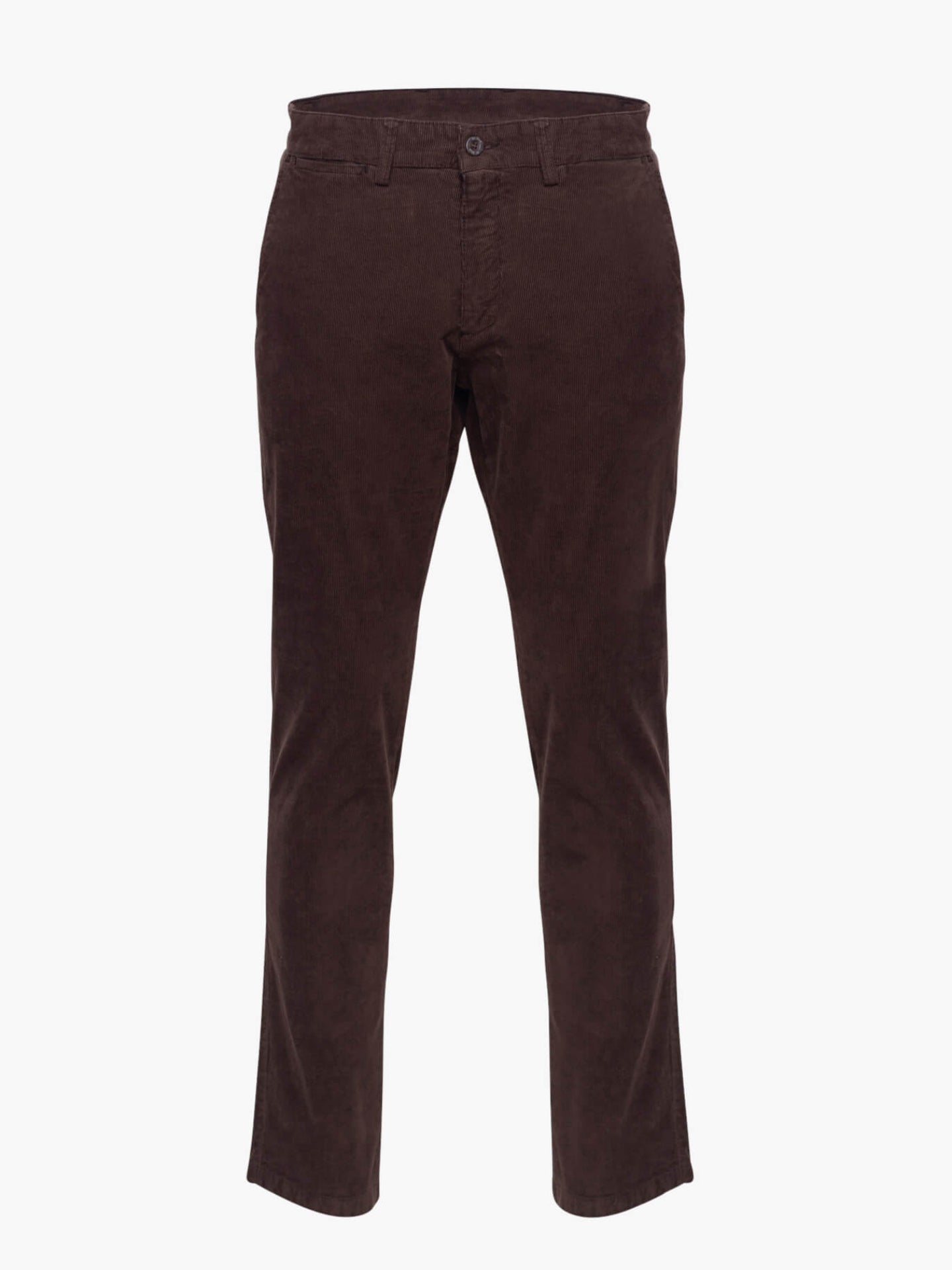 Calças algodão bombazina castanho. Corte regular. carcela com fecho de correr oculto, 2 bolsos laterais, 2 bolsos de ilhós abotoado na parte posterior e presilhas para o cinto. Quente e muito confortável, são a escolha certa para os dias de Inverno.
