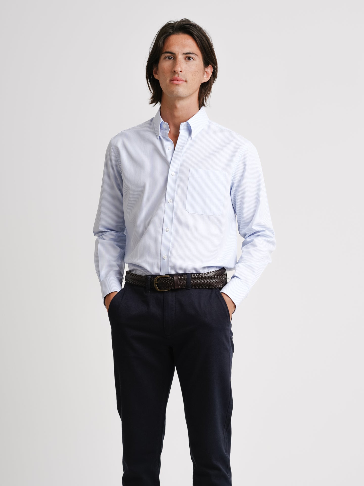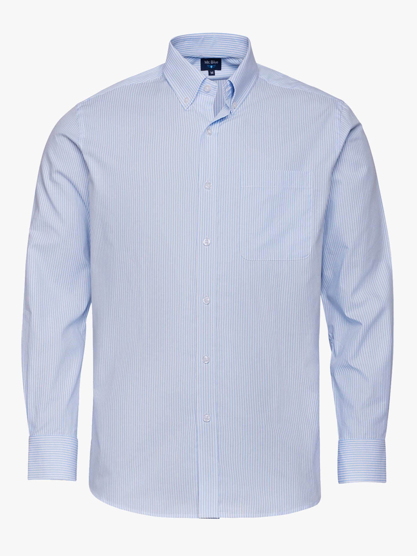 Camisa Regular Fit Oxford Azul Algodão Riscas Com bolso