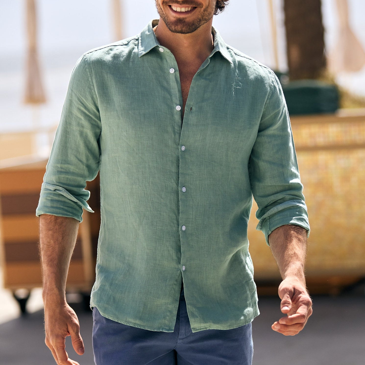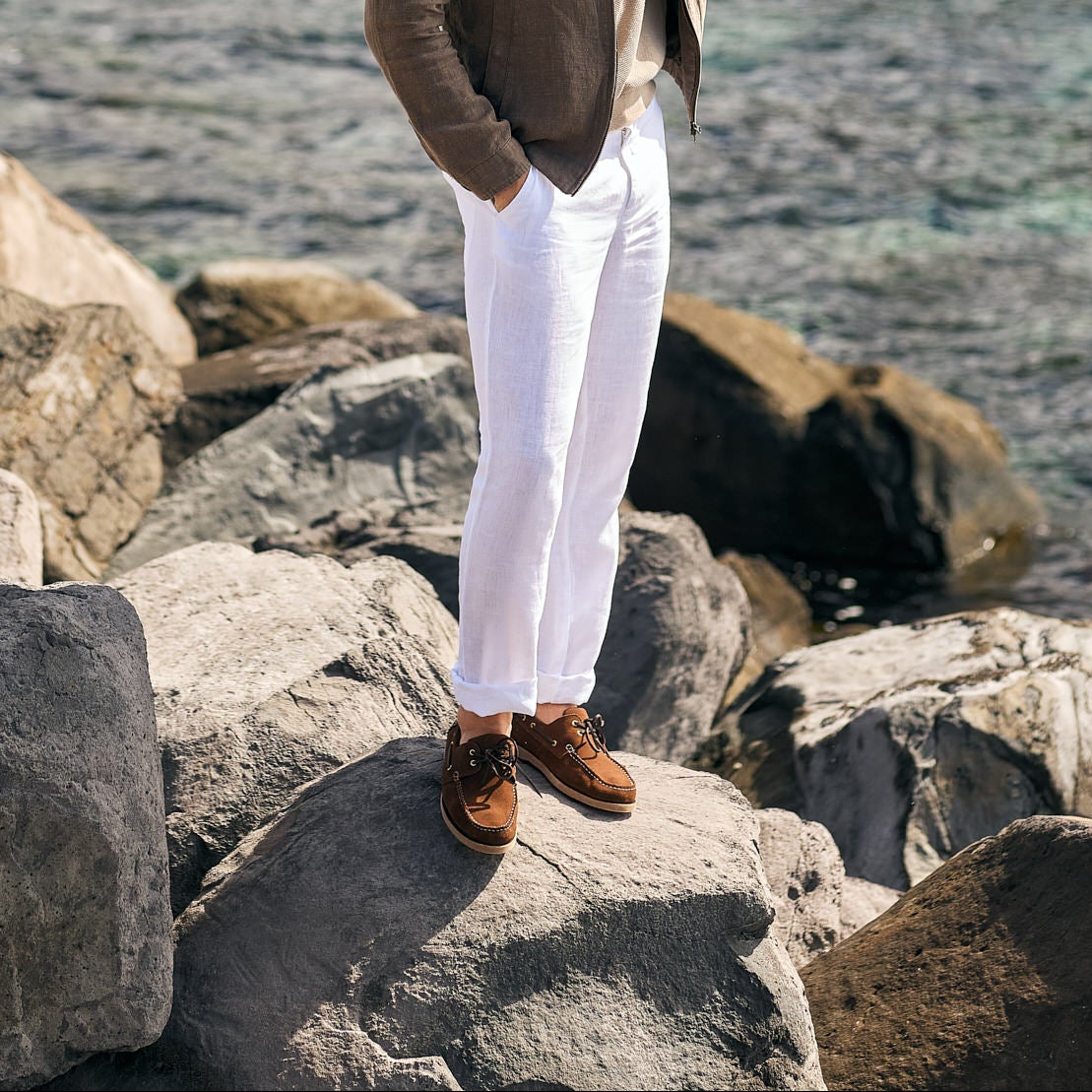 Calças Beges Linho Regular Fit