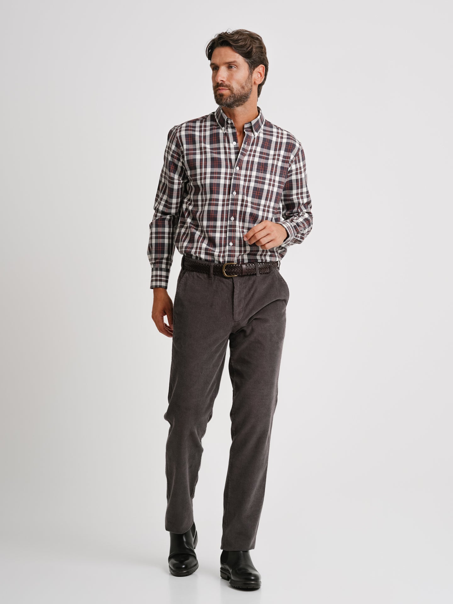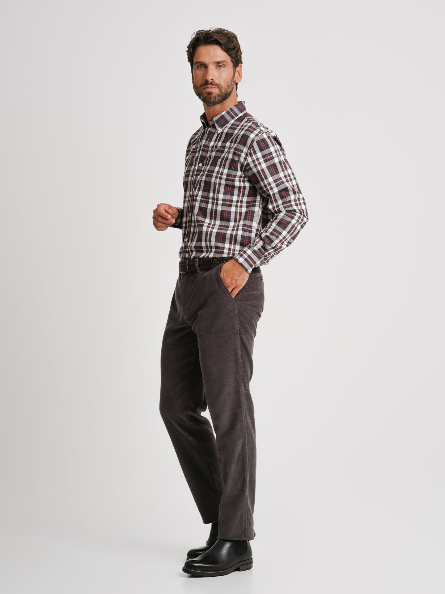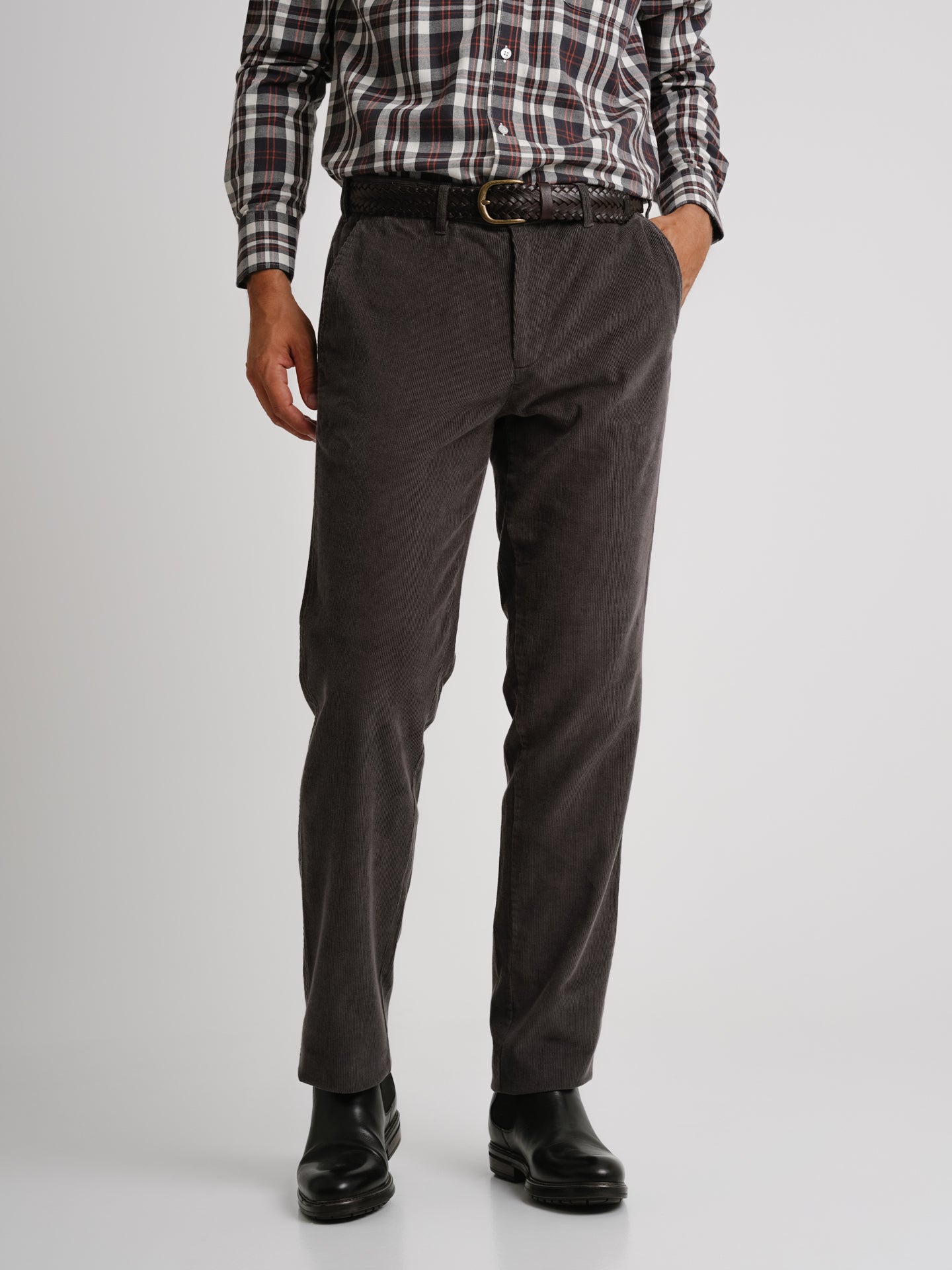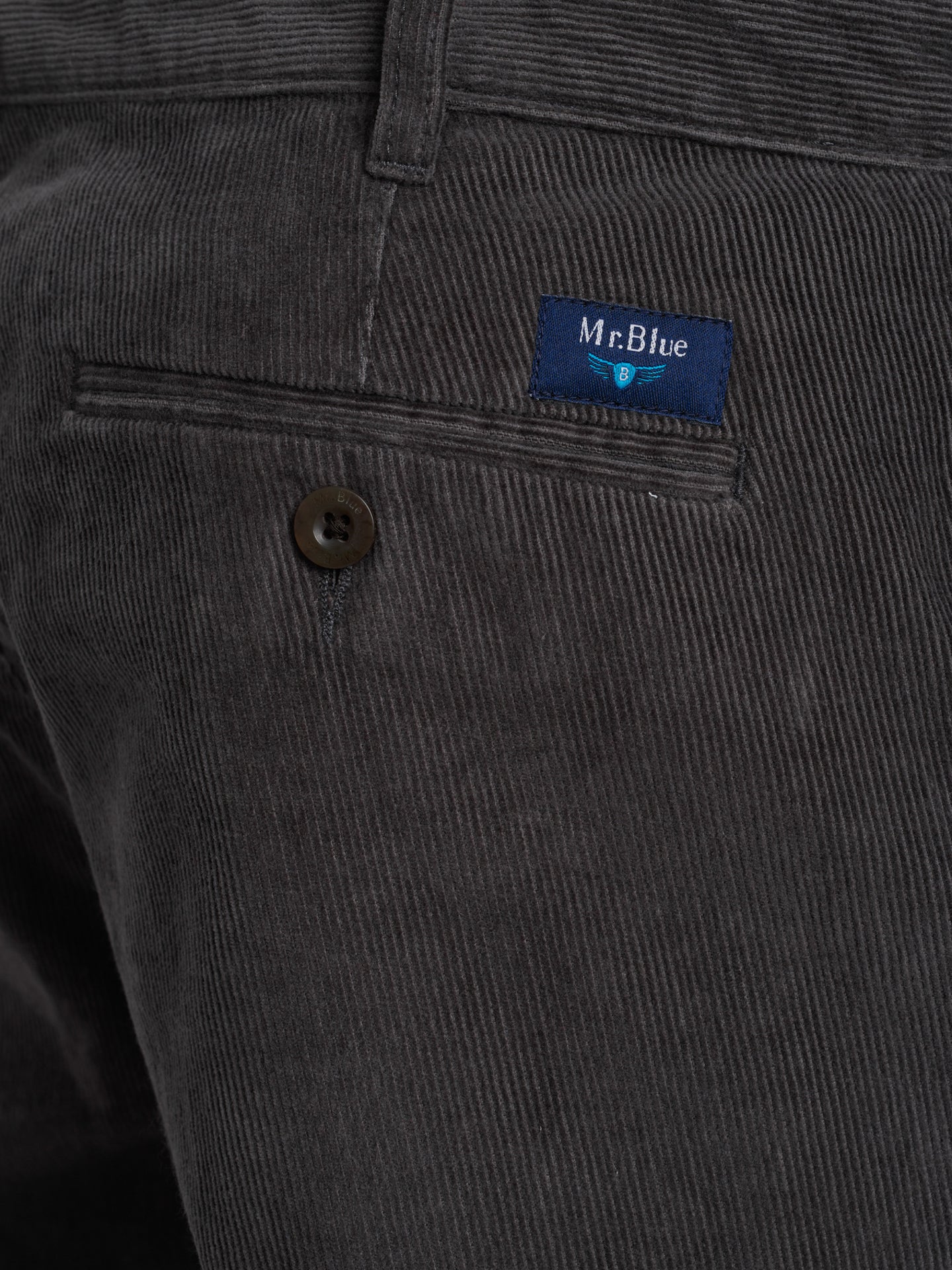 Calças Bombazine Regular Fit Cinzento Algodão Liso