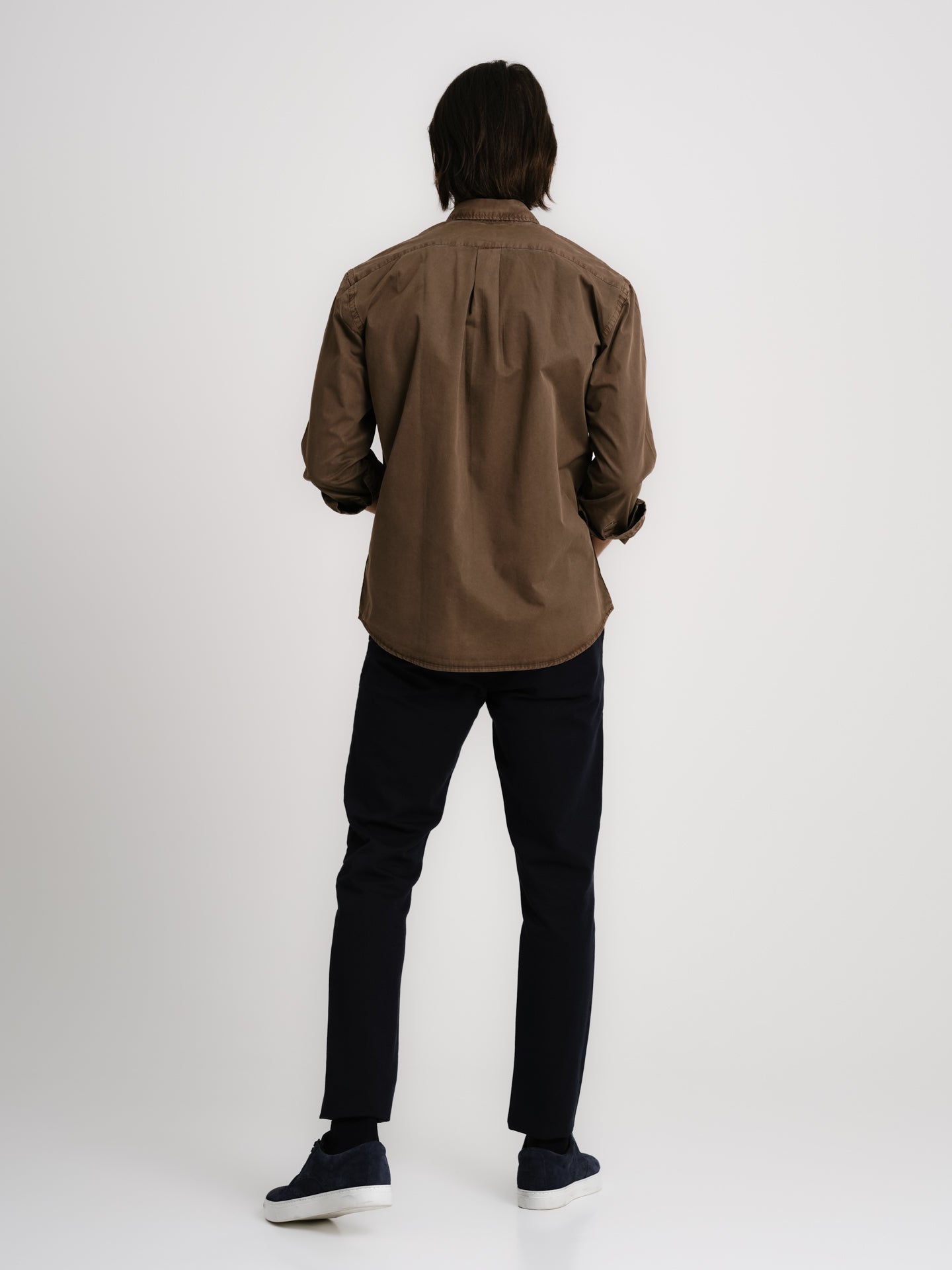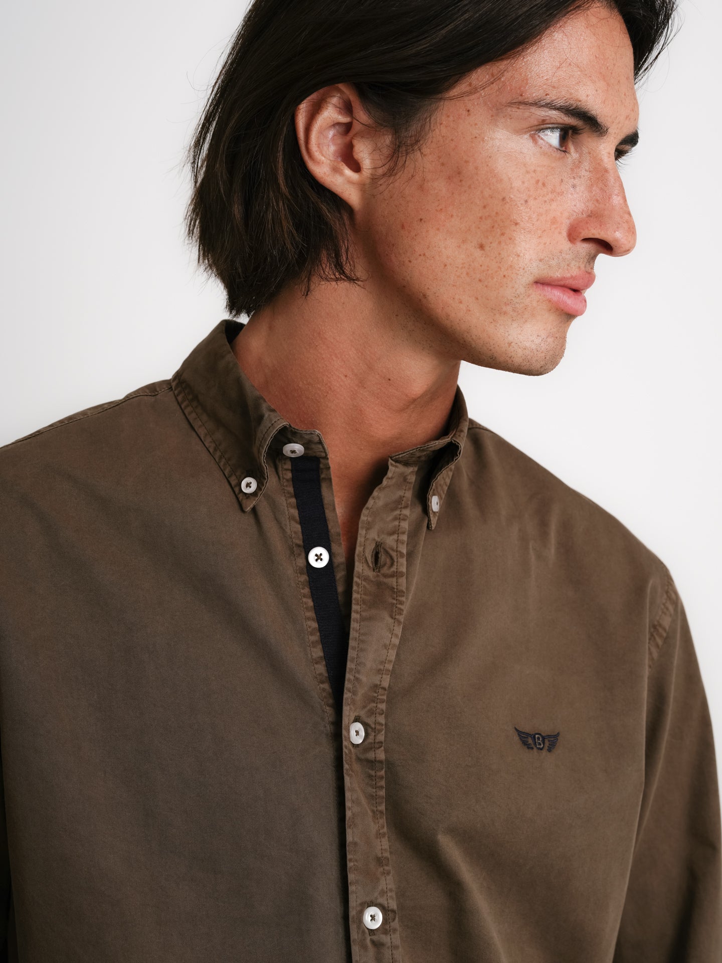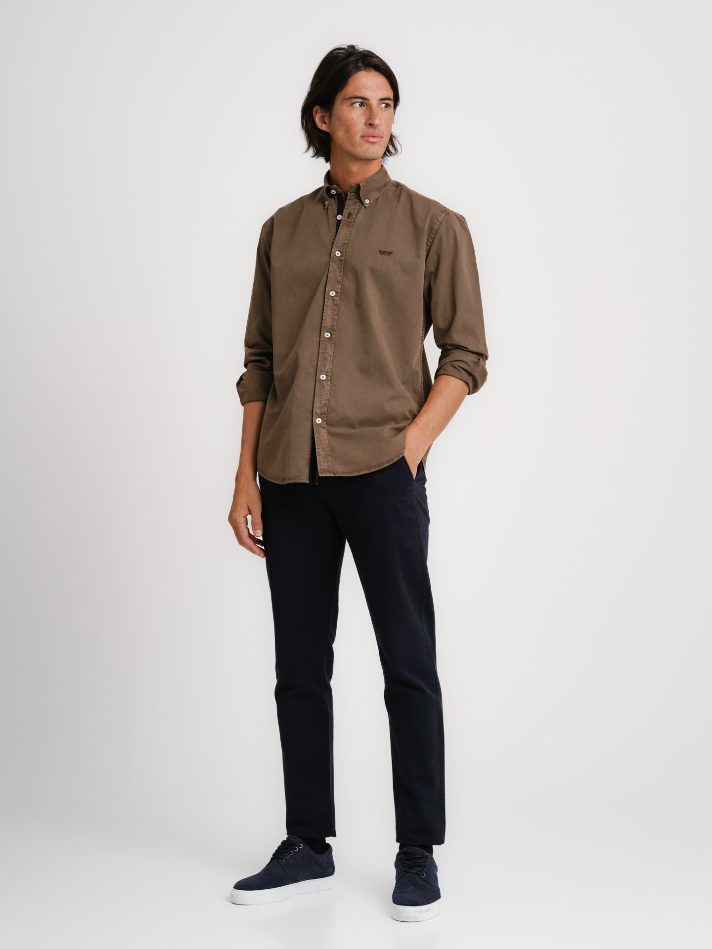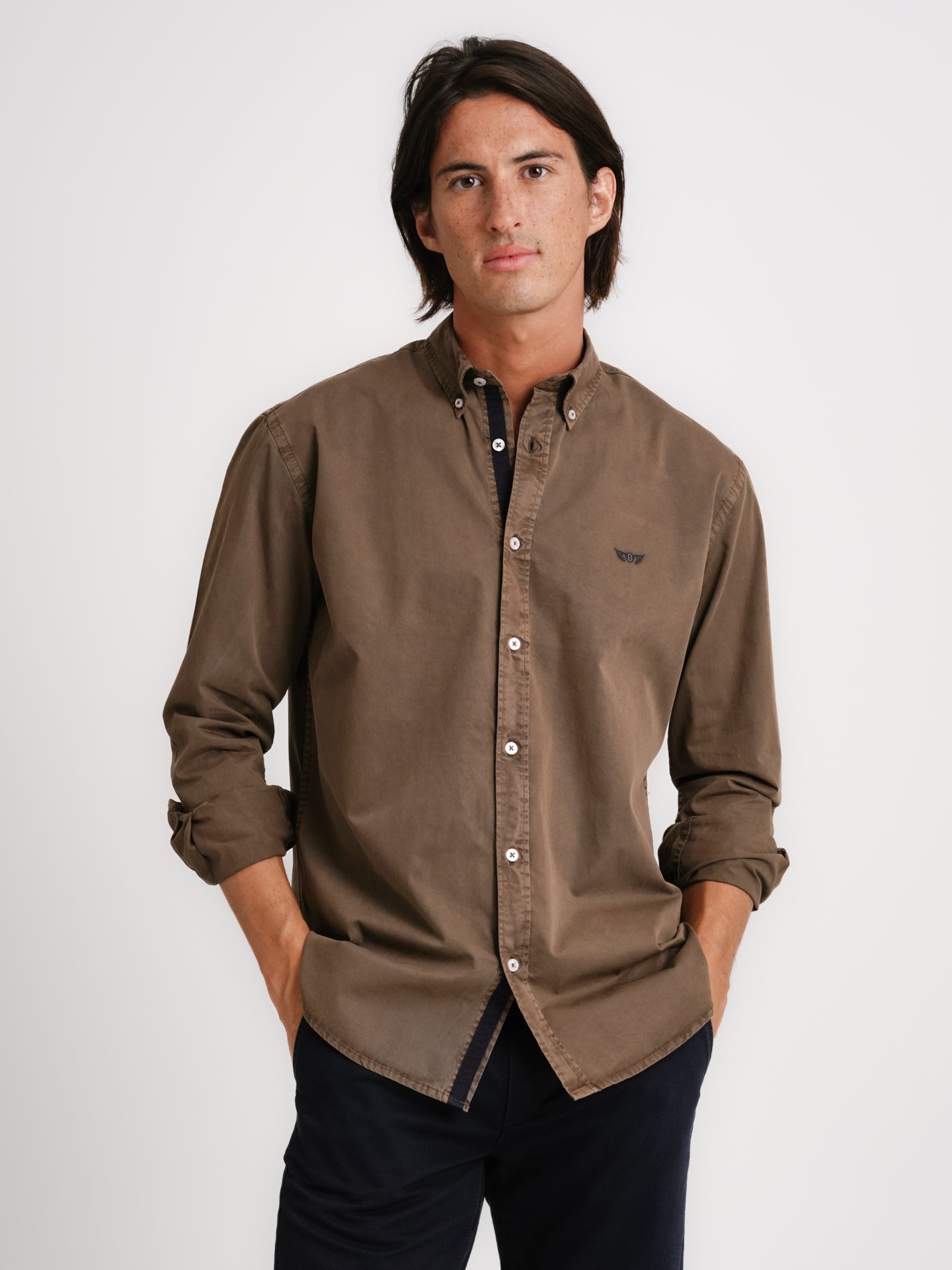 Camisa Regular Fit Twill Bege Algodão Liso Com logo