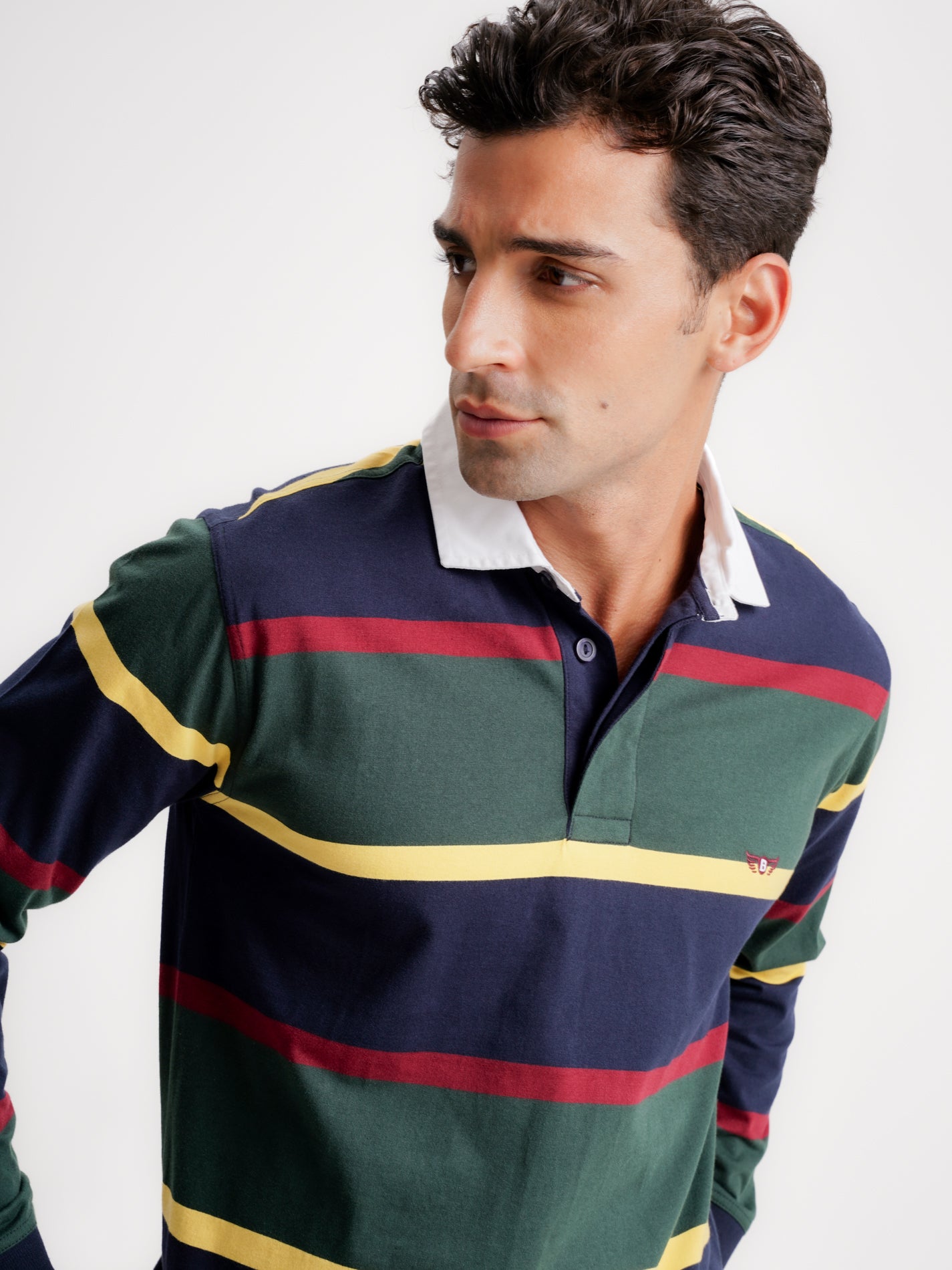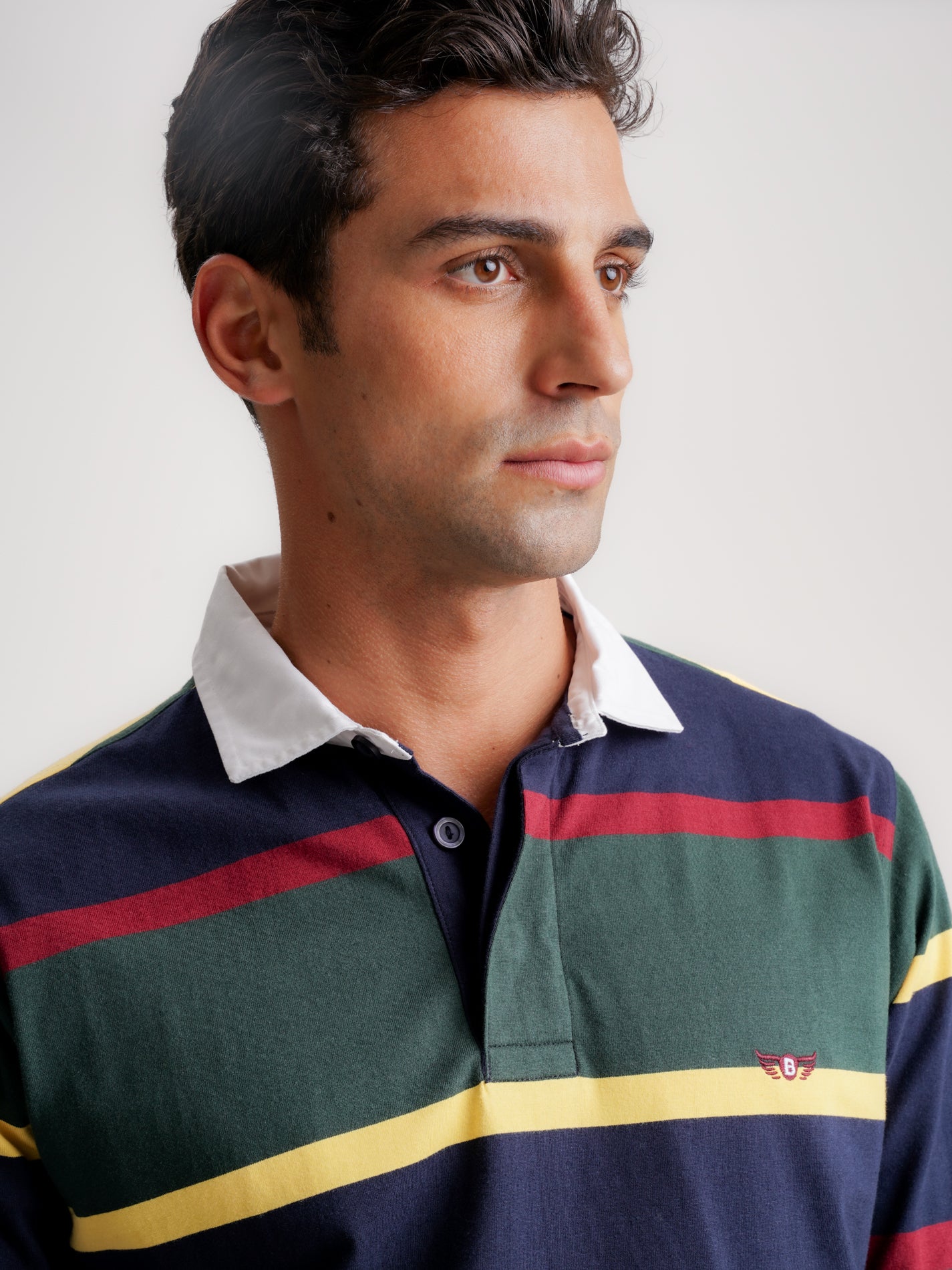 Rugbie Regular Fit Azul De Algodão Manga Comprida Com Riscas e Com Logo