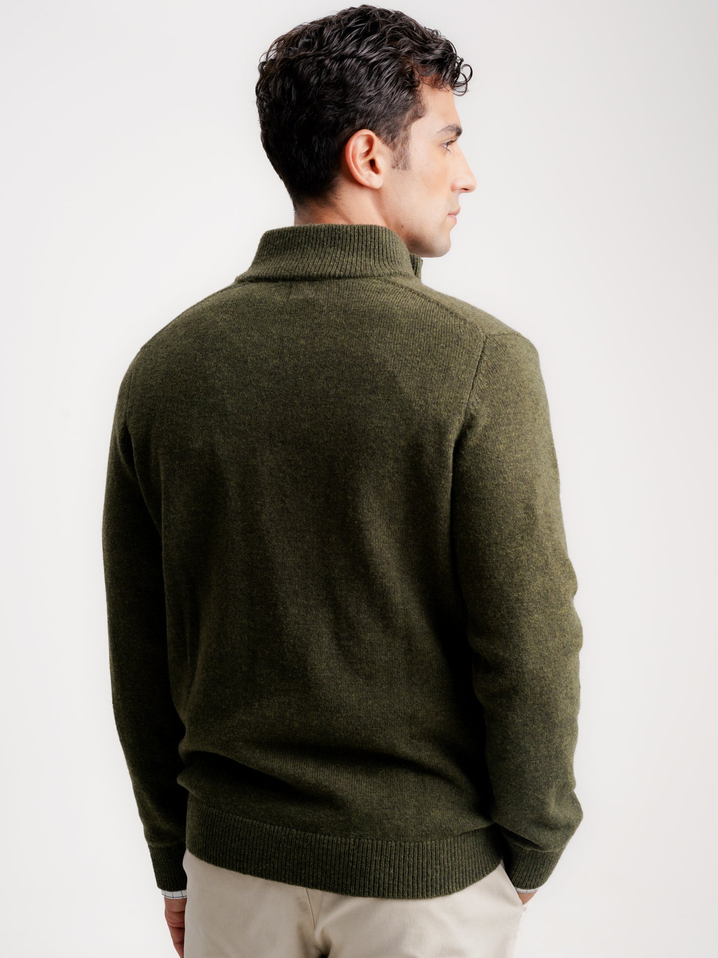 Pullover Lã Grosso Verde Liso Sem Logo e Sem Bolso