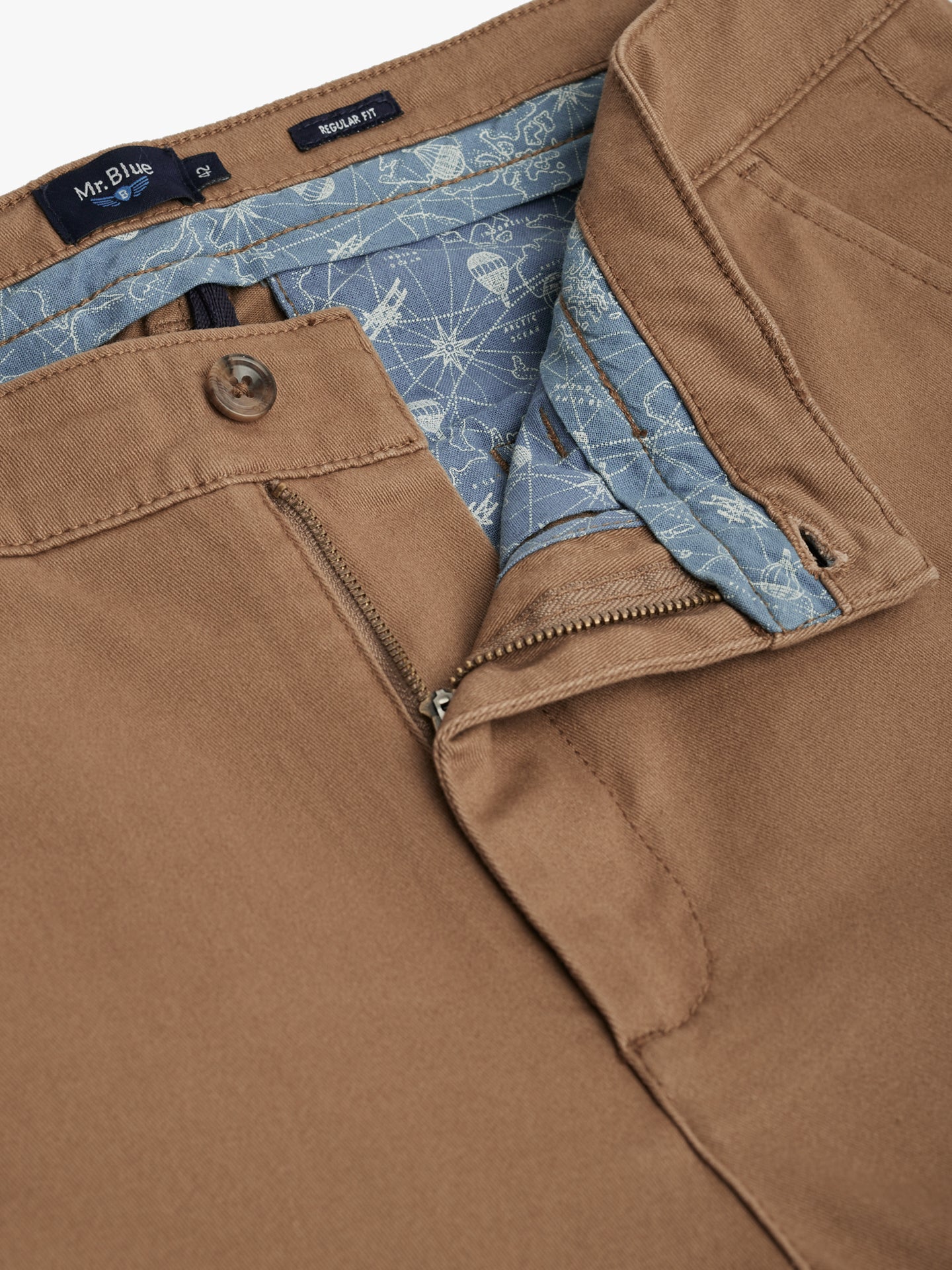 Calças Chinos Regular Fit Camel De Algodão Lisas