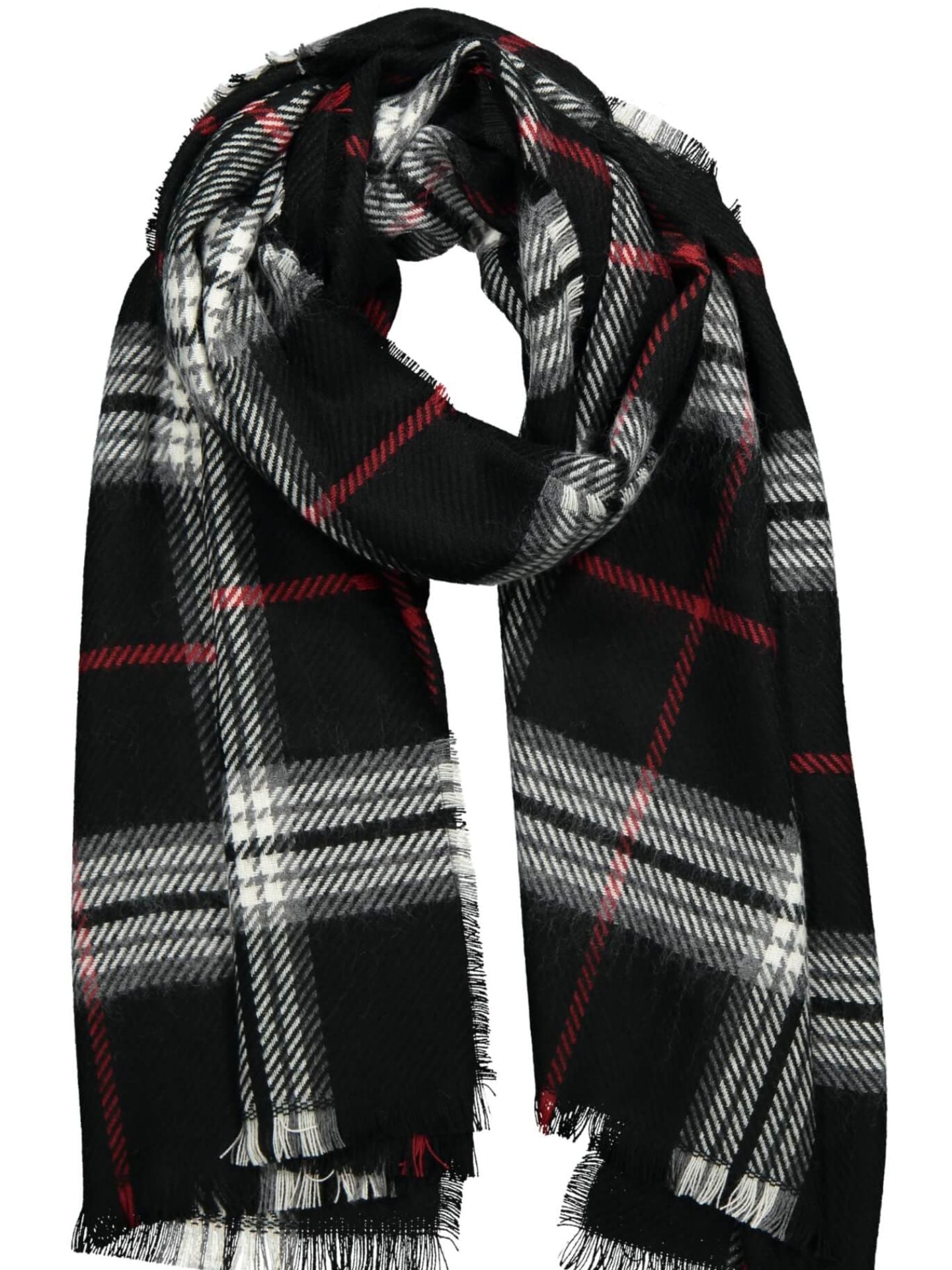 Cachecol preto aos quadrados grandes. Confortável e aconchegante, ideal para os dias mais frios de inverno.