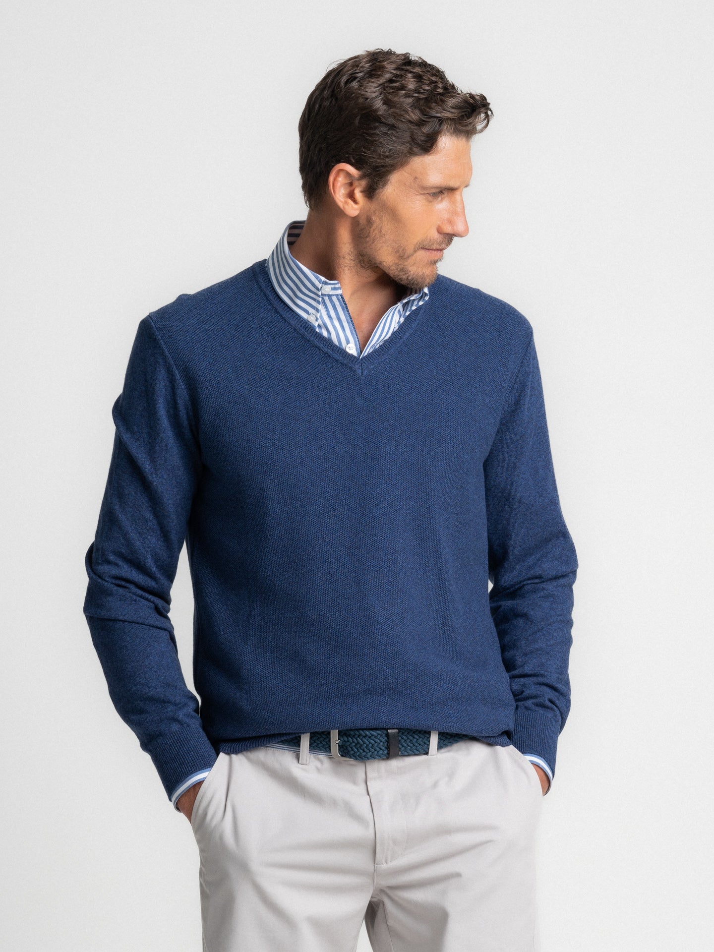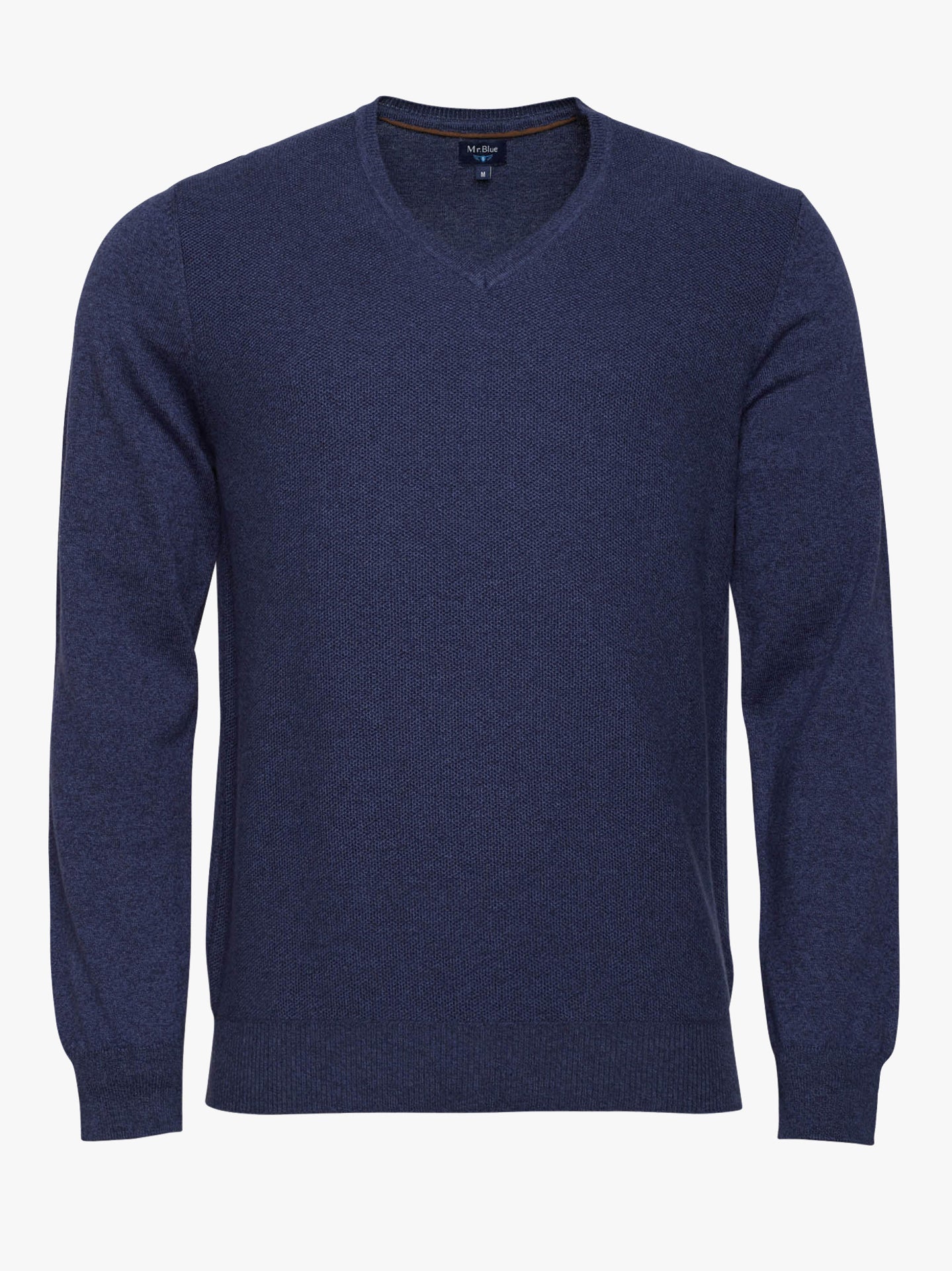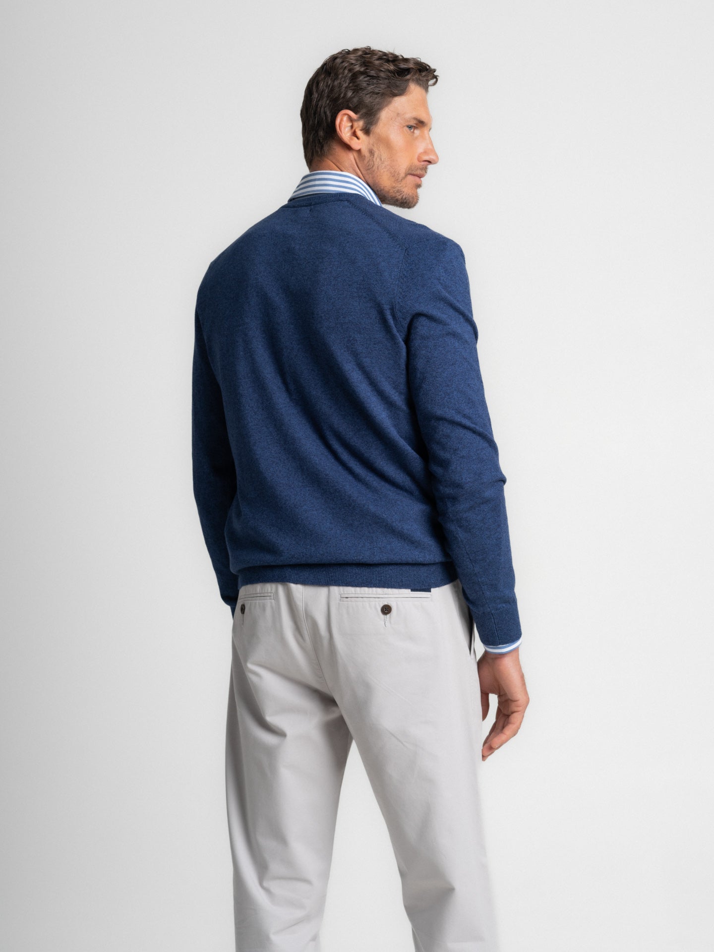 Camisola de Algodão e Caxemira Azul fina com Decote em V