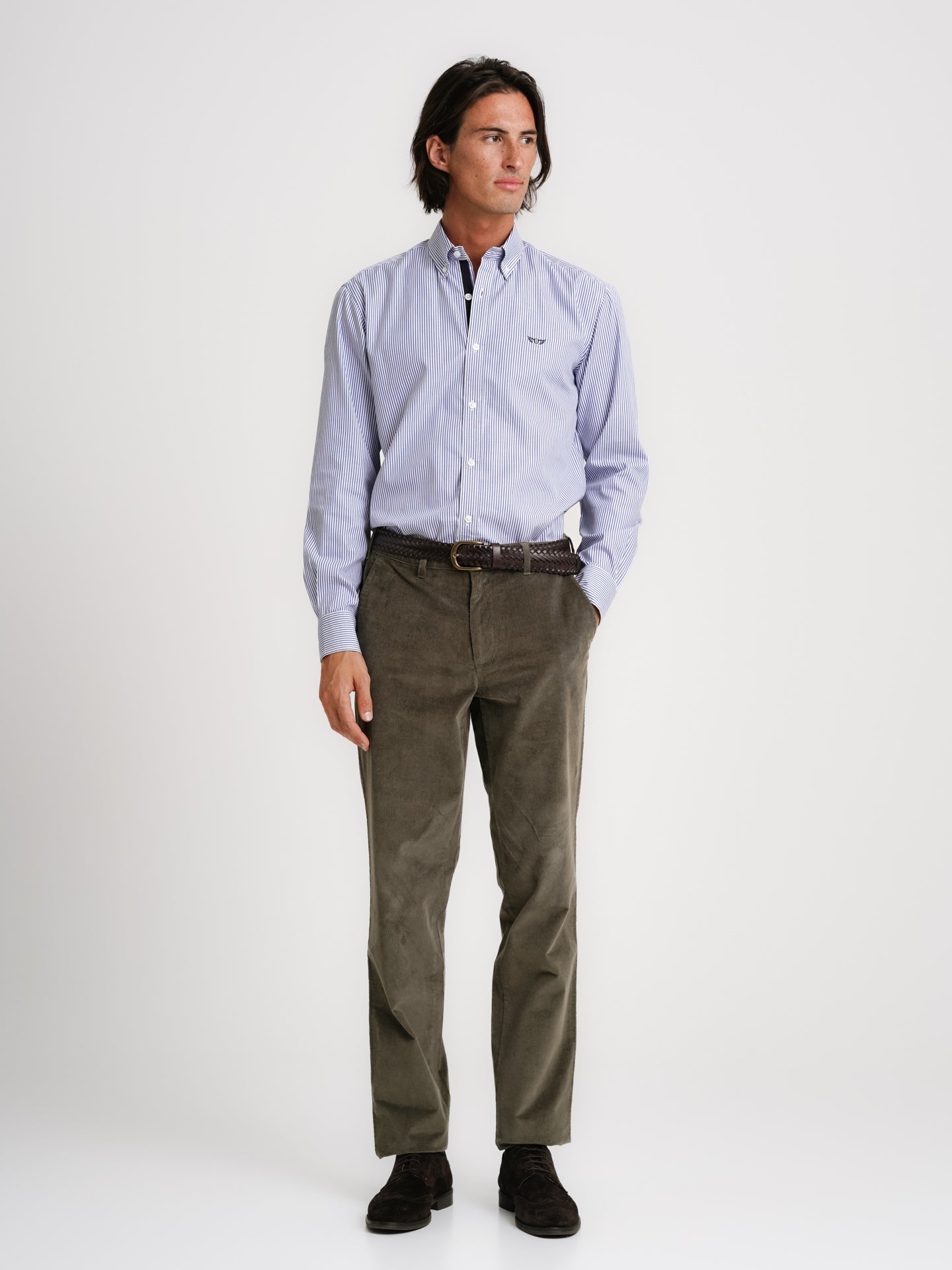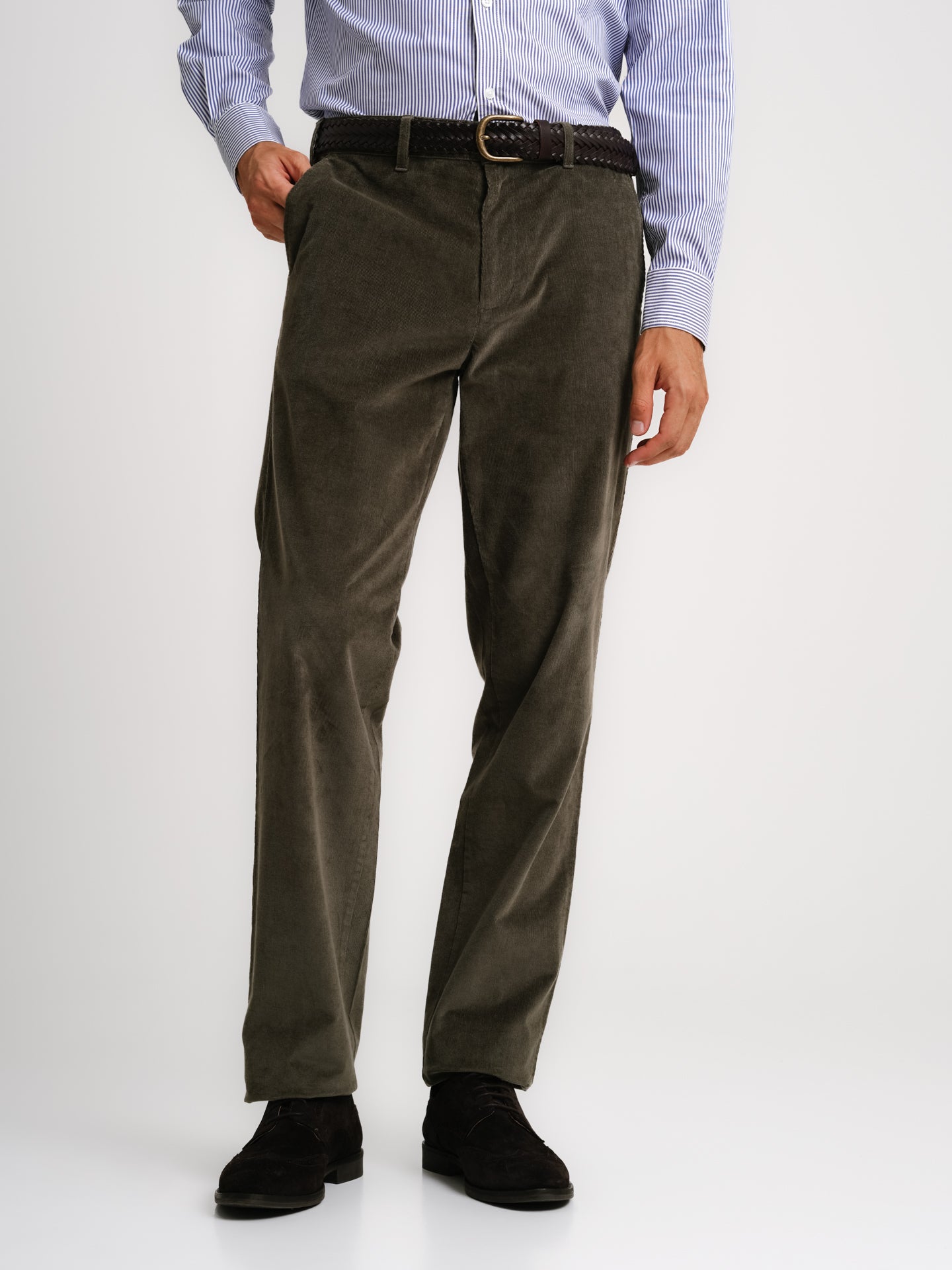 Calças Bombazine Regular Fit Verdes De Algodão Lisas
