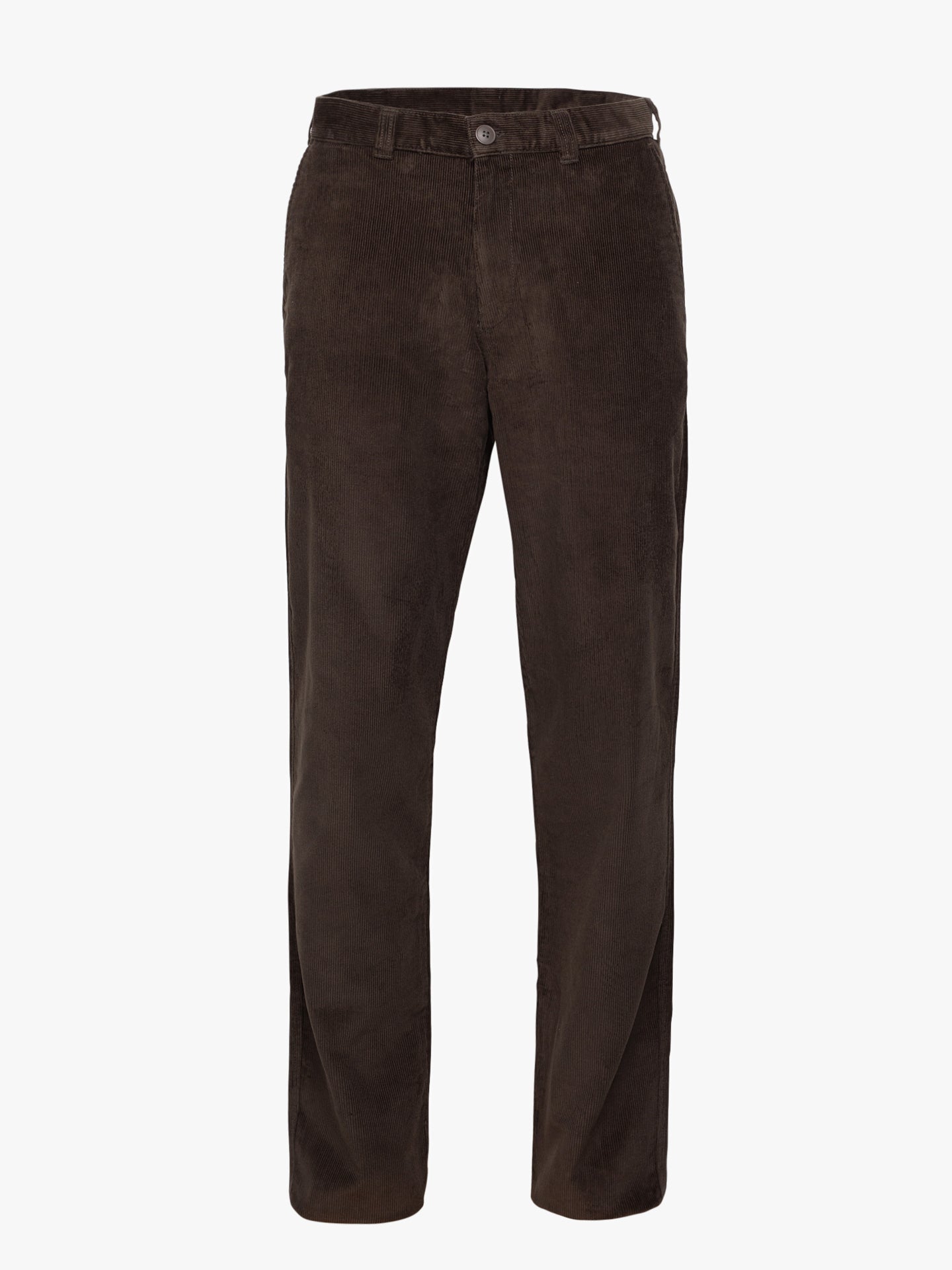 Calças Bombazine castanho escuro para homem.