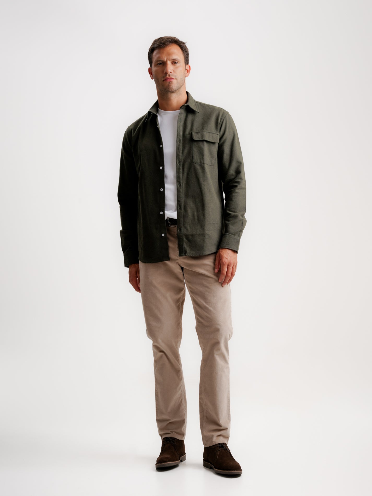 Camisa Regular Fit Flanela Verde Manga Comprida Com Bolso Lisa