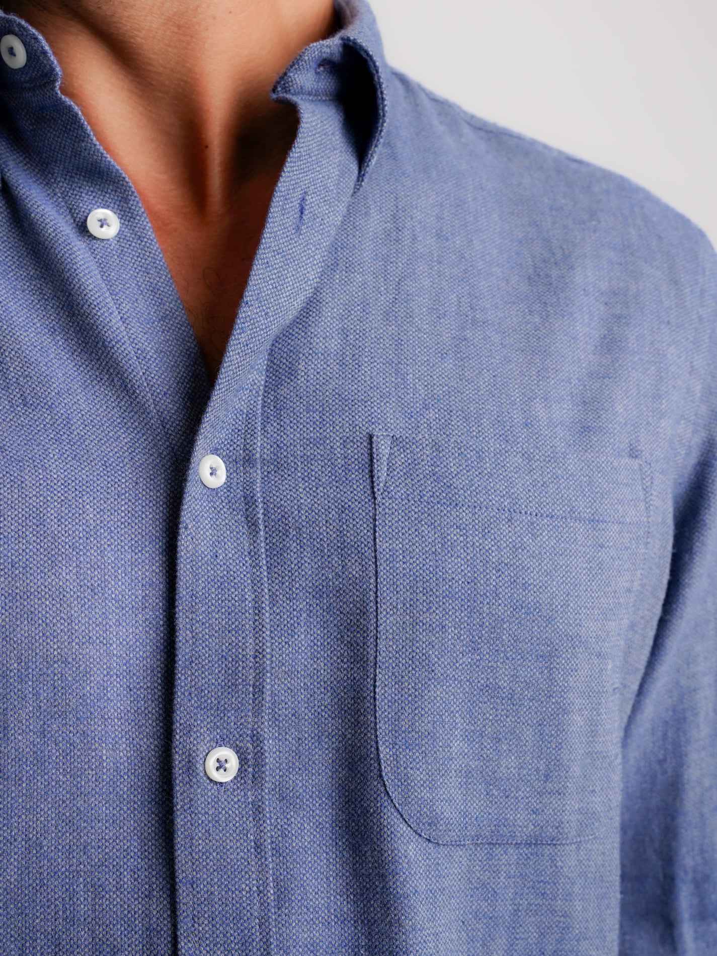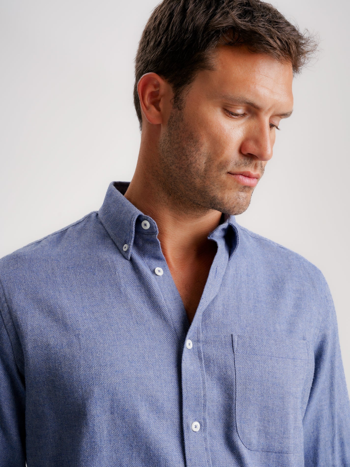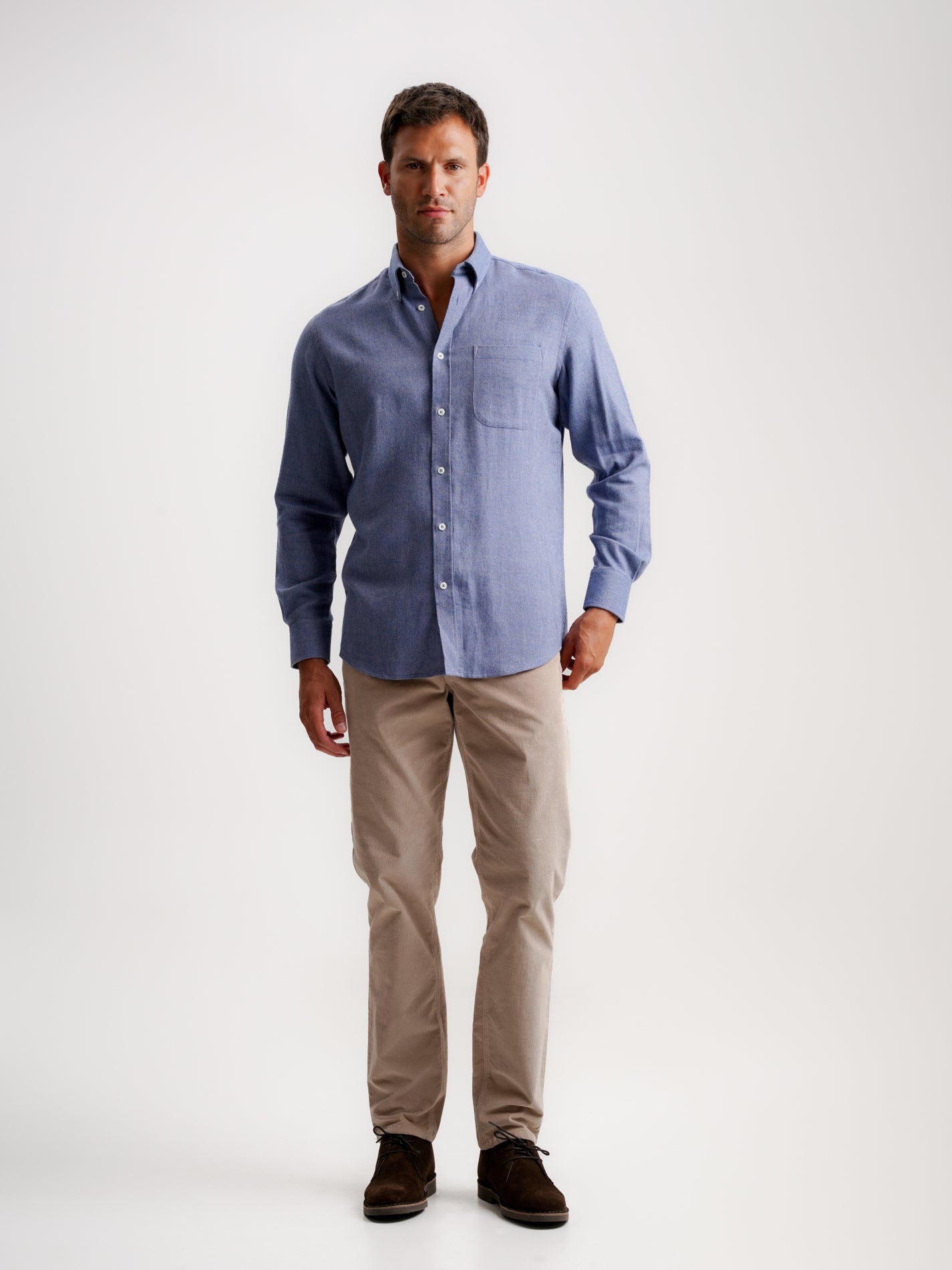 Camisa Linho Azul Manga Comprida Tailored Fit
