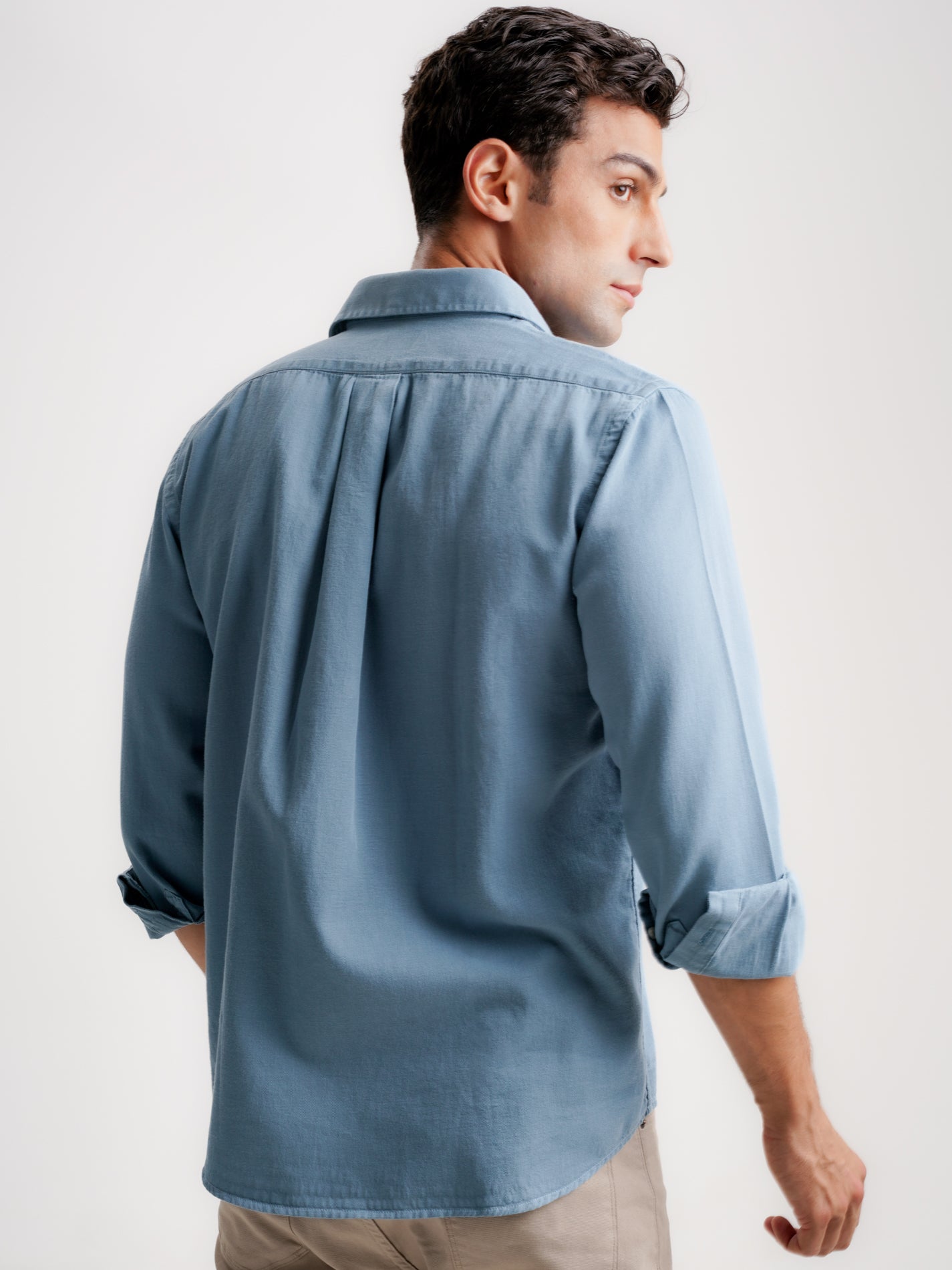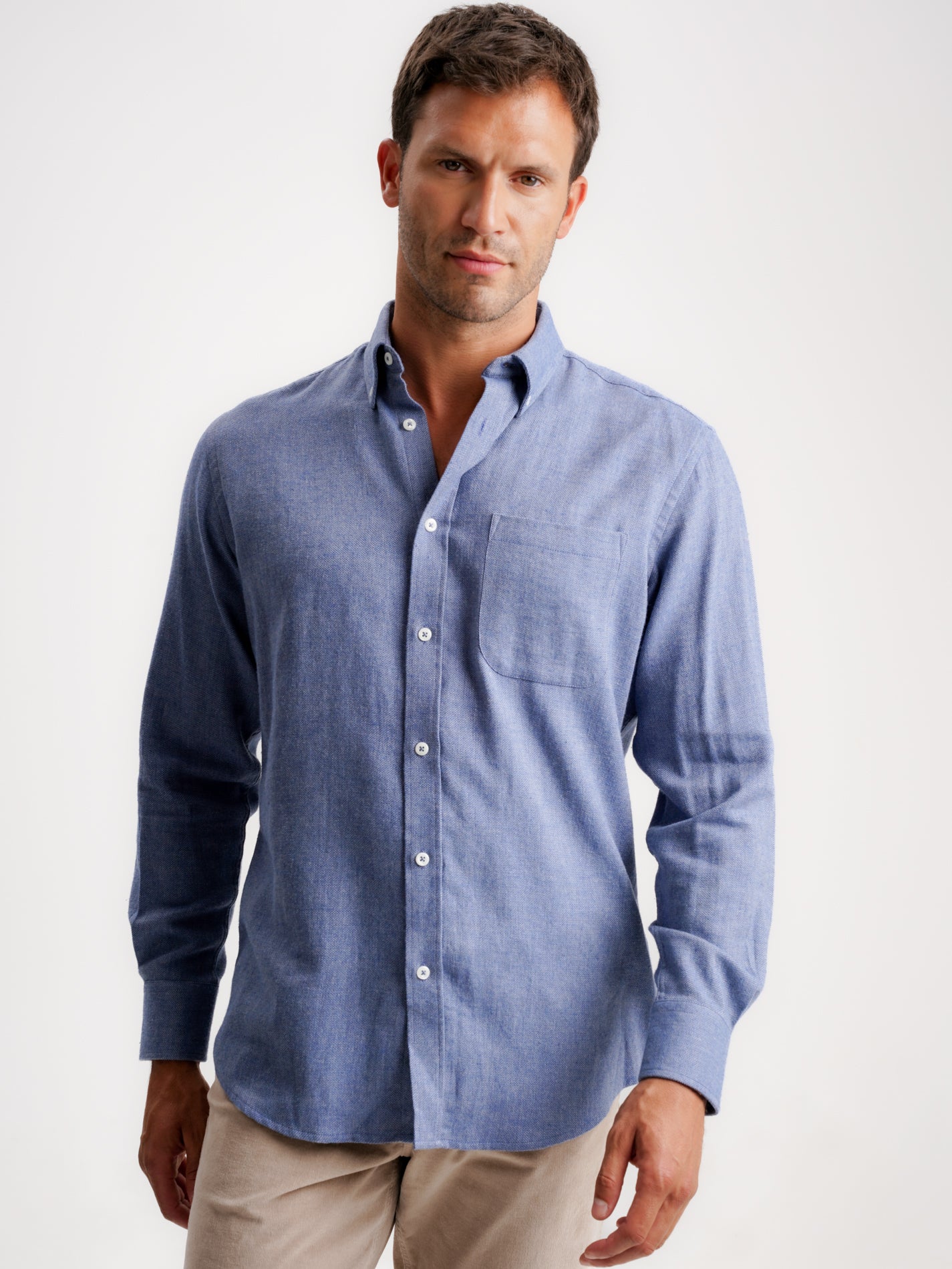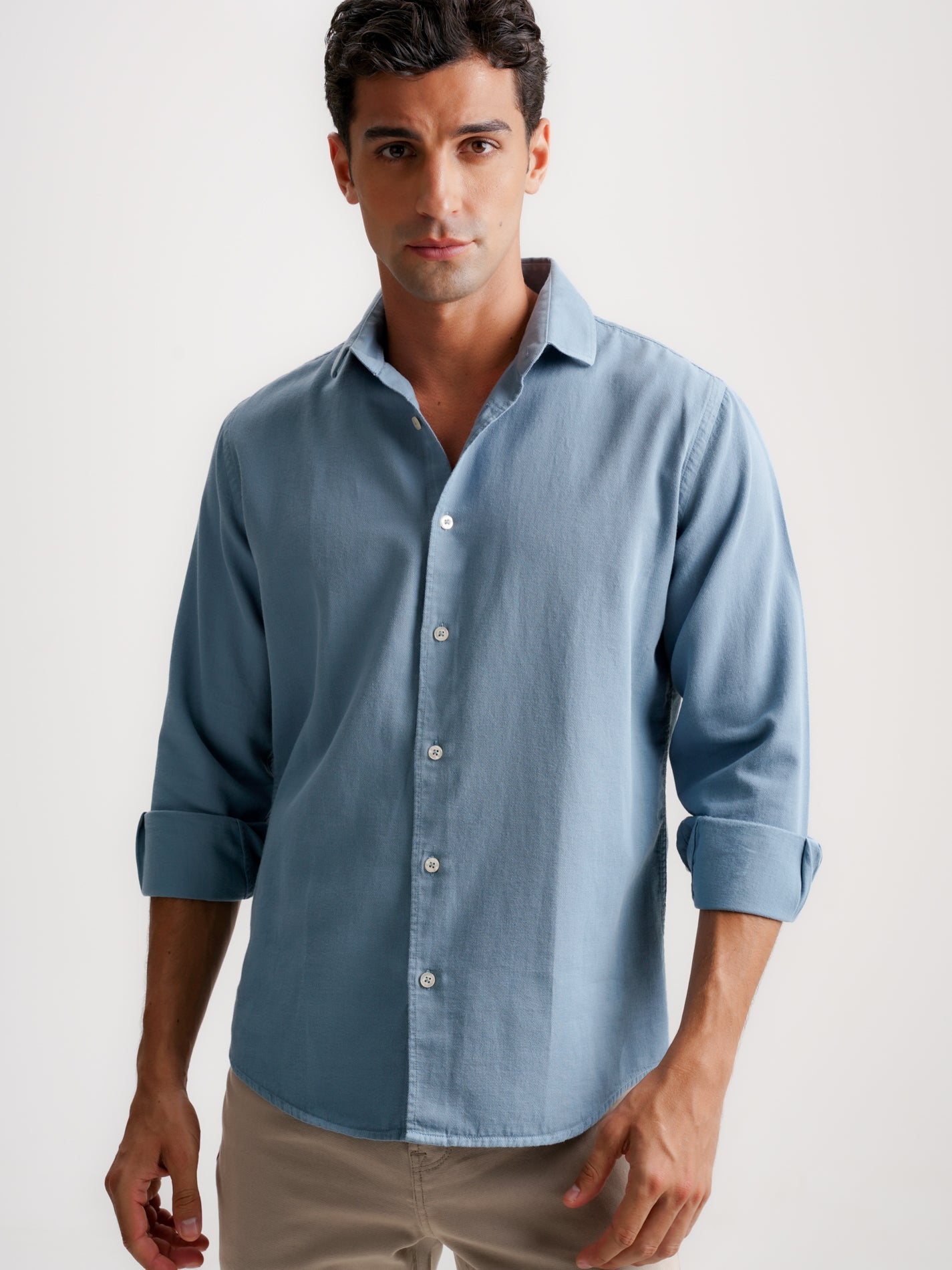 Camisa Algodão Azul Manga Comprida Regular Fit