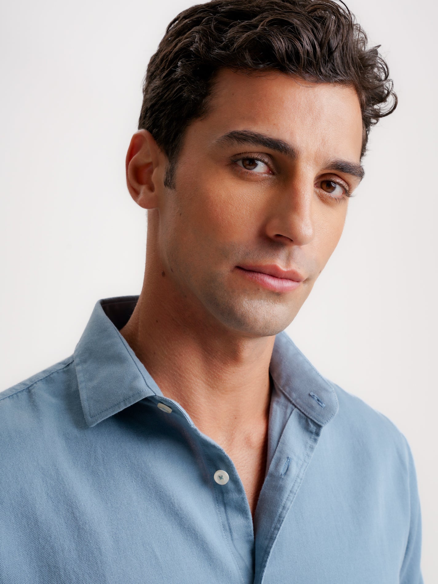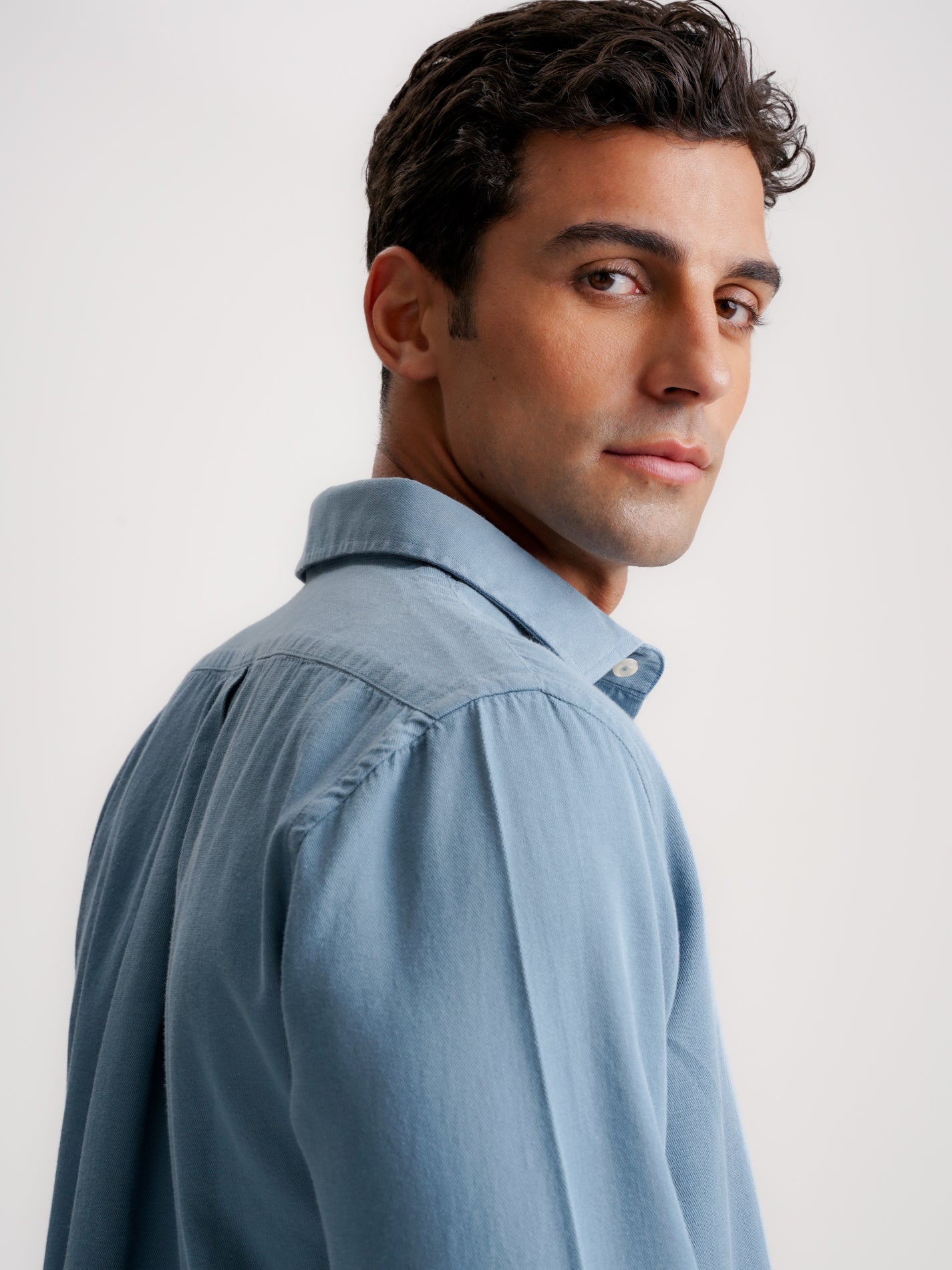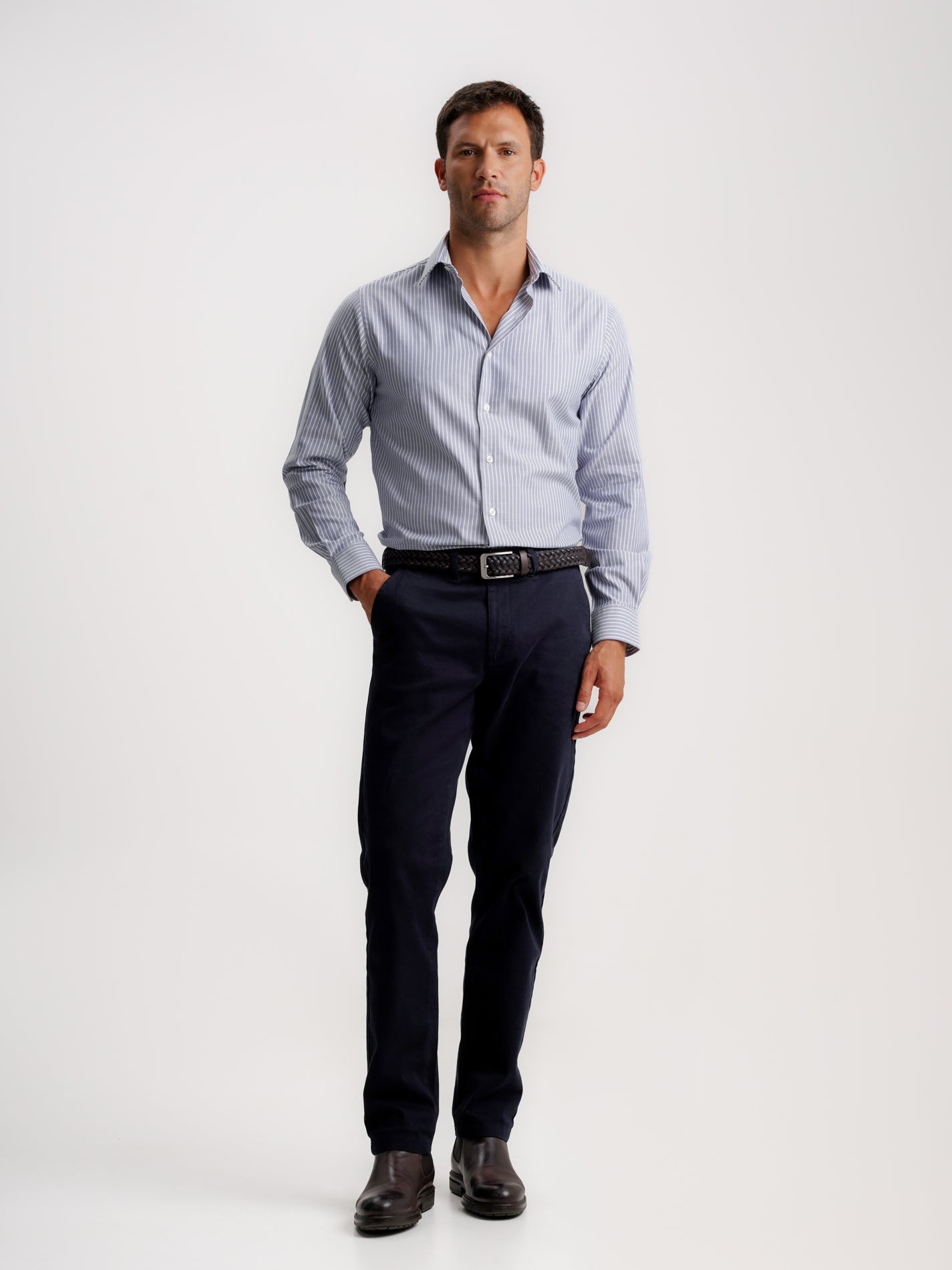 Camisa Algodão Azul Manga Comprida Regular Fit