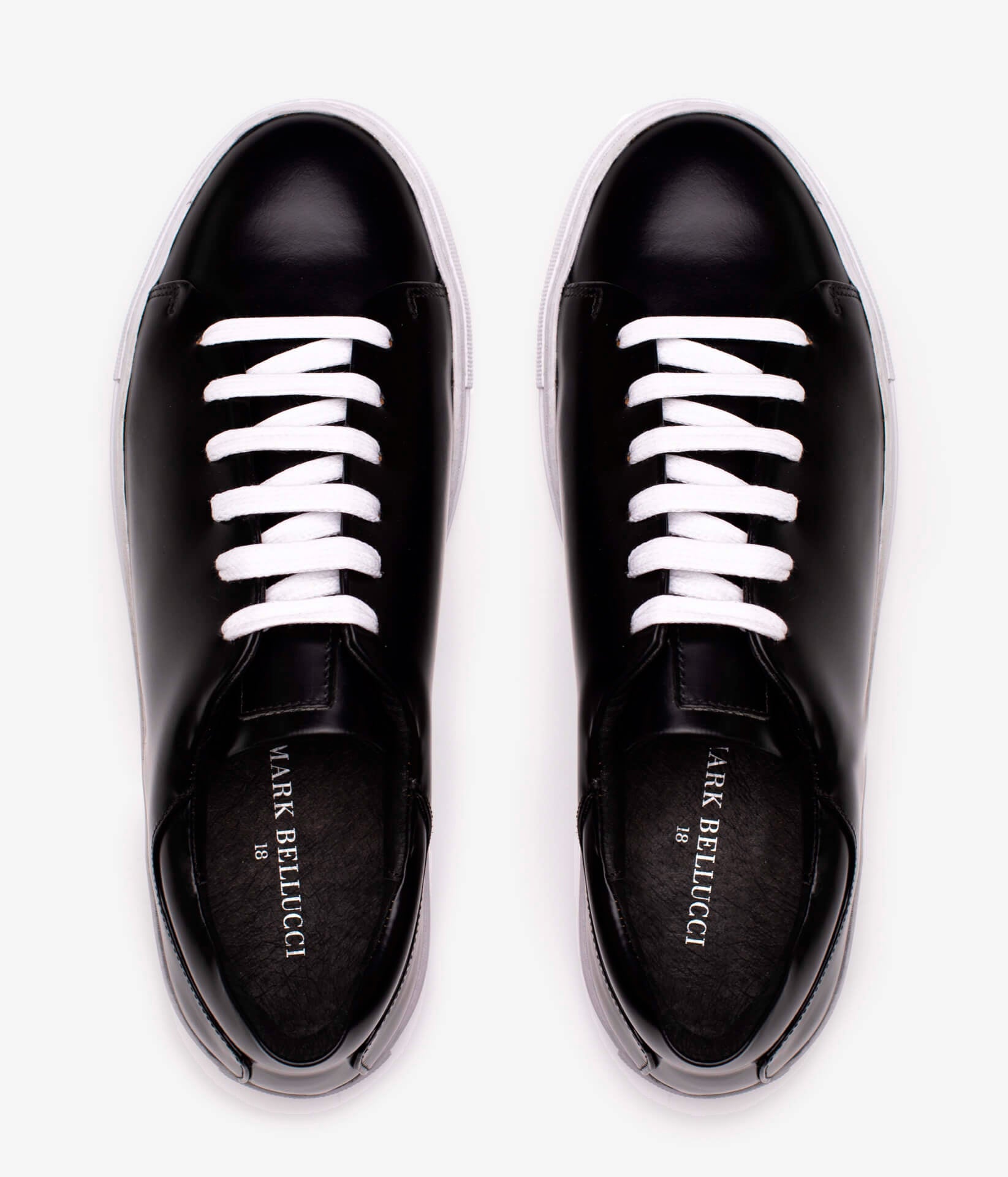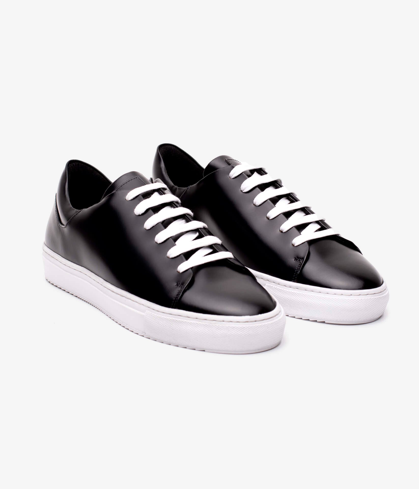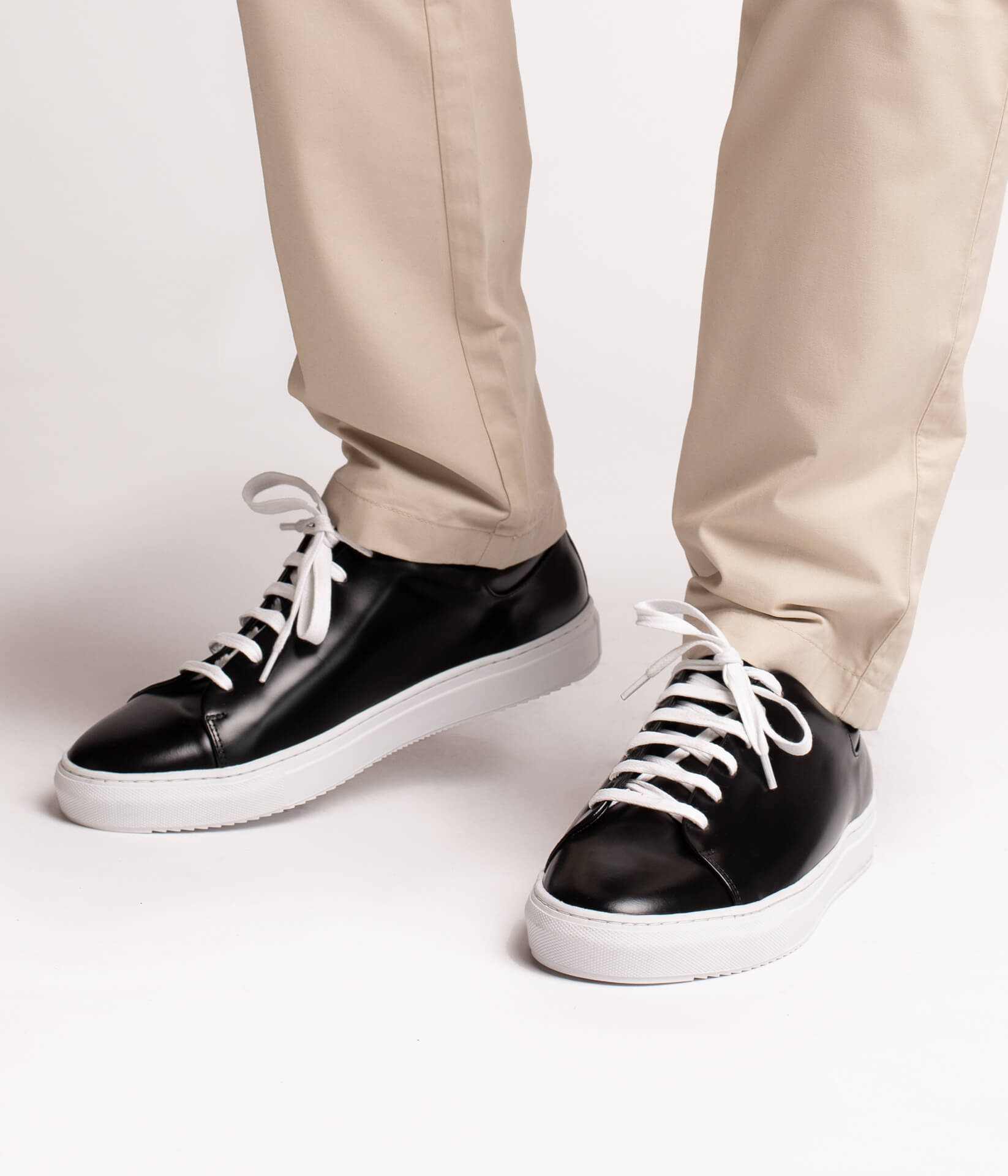 O nosso modelo Sandler Colour Block é um dos nossos modelos mais desportivos. Feito a partir de couro polido preto e sola de borracha branca, este é o modelo que vai querer usar em ambientes descontraídos.