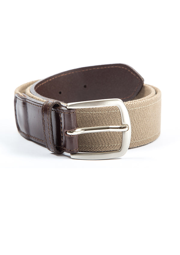 Cinto elástico com riscas grossas beje castanho