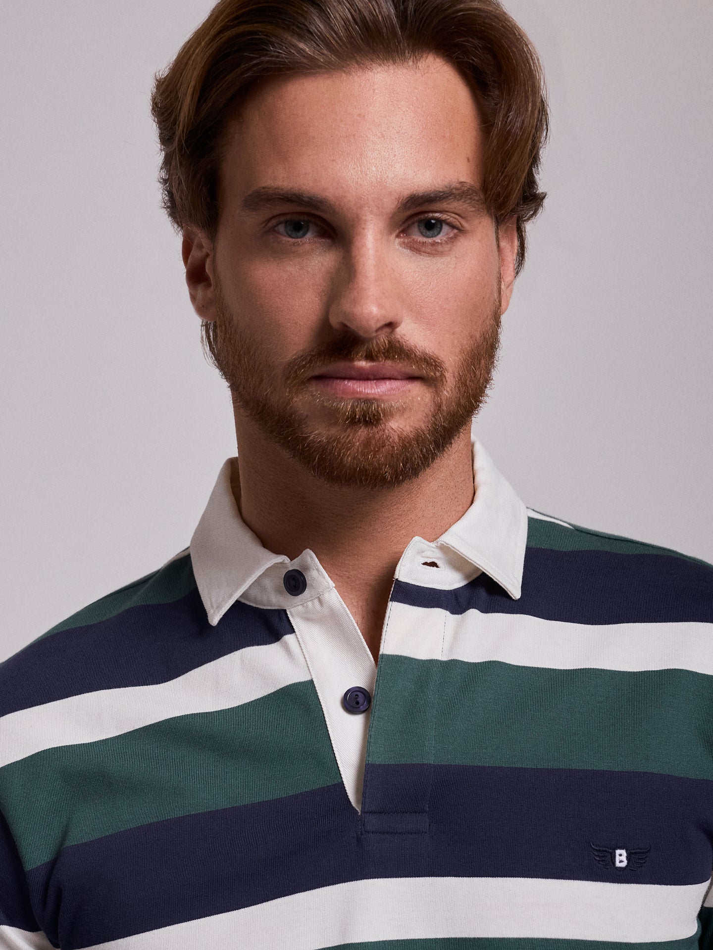 Rugbie Algodão Azul Manga Comprida Regular Fit