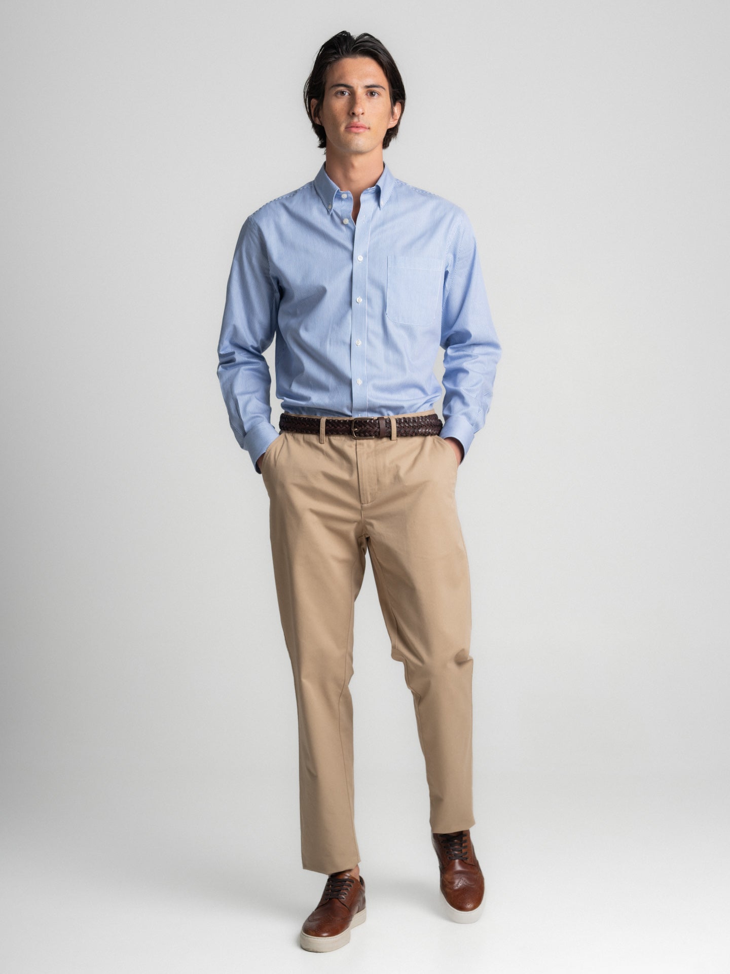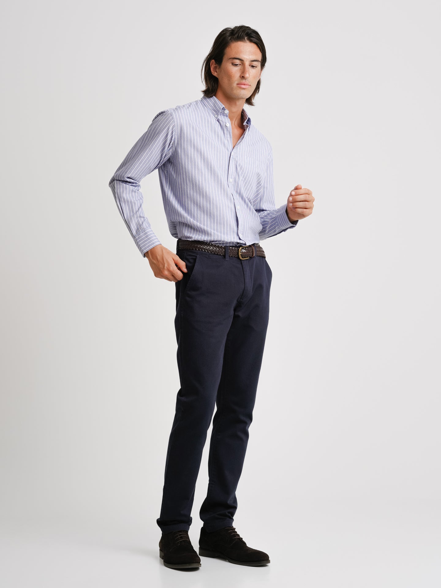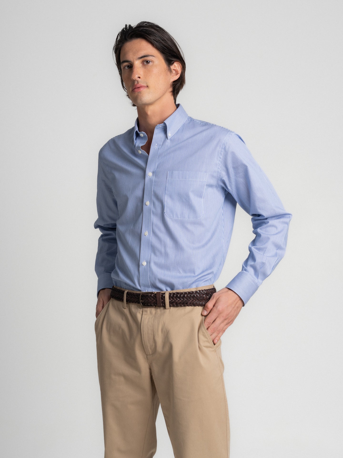 Camisa Algodão Azul Manga Comprida Regular Fit