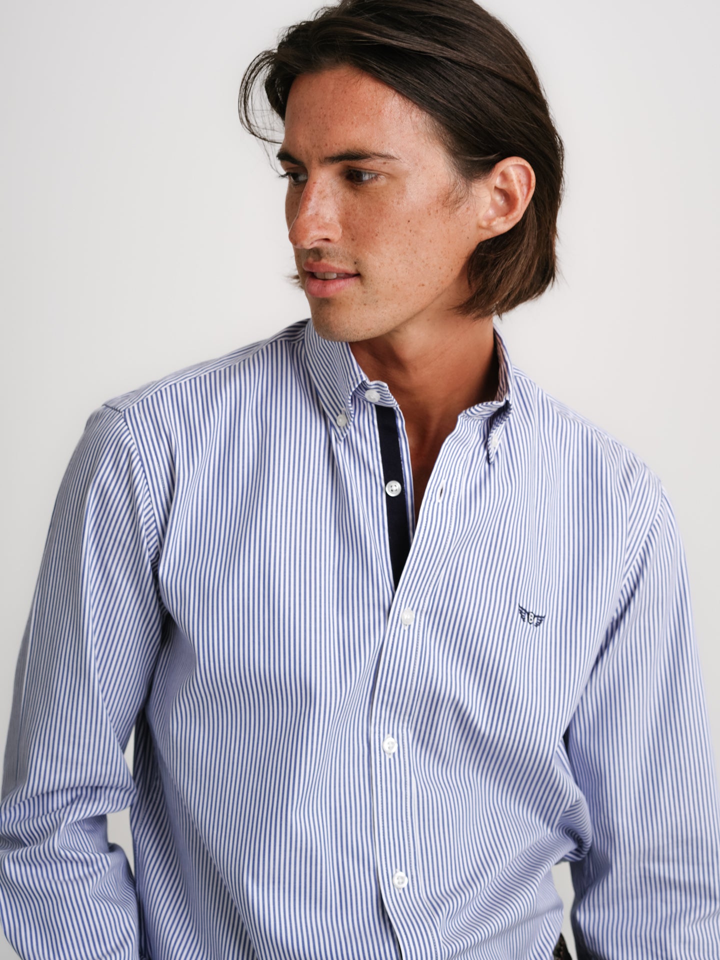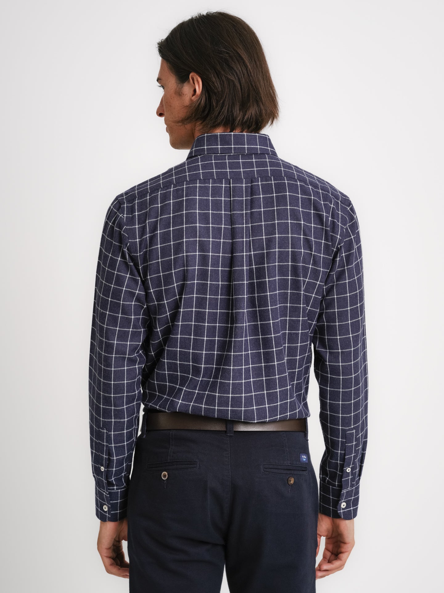 Camisa Algodão Azul Manga Comprida Regular Fit